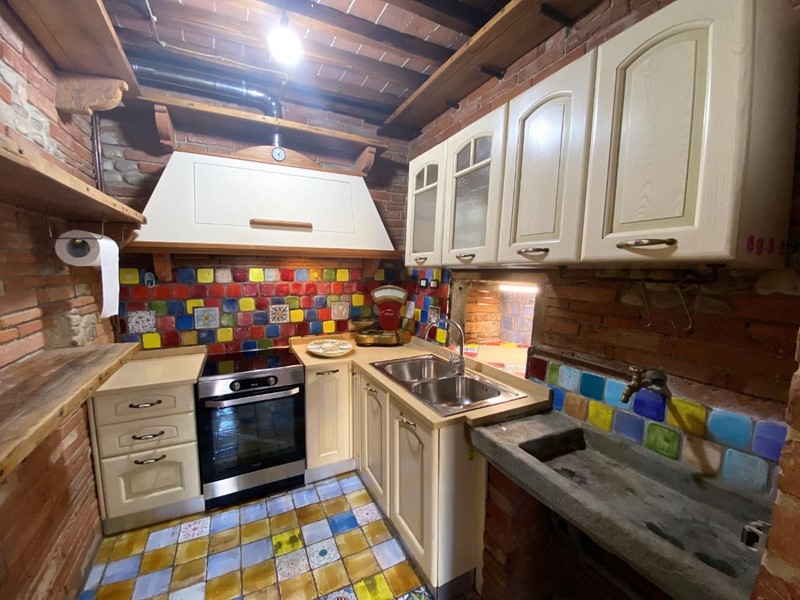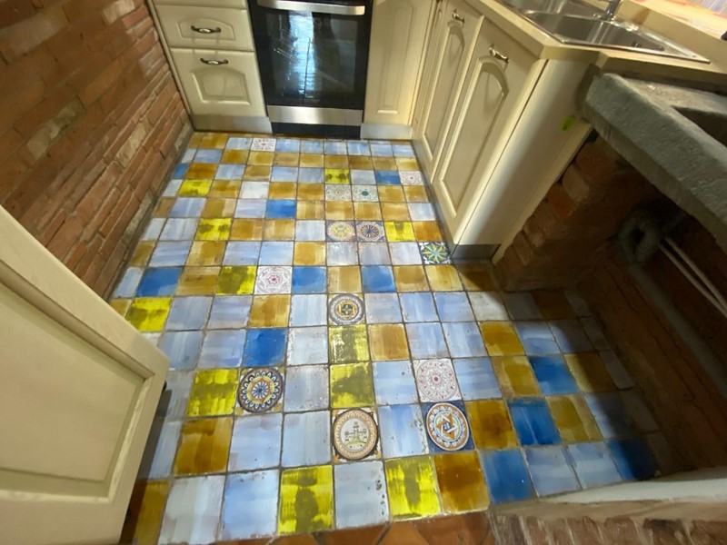 La ristrutturazione ha preservato lo stile rustico toscano, pavimentazione e rivestimenti in cotto spagnolo dipinto a mano.