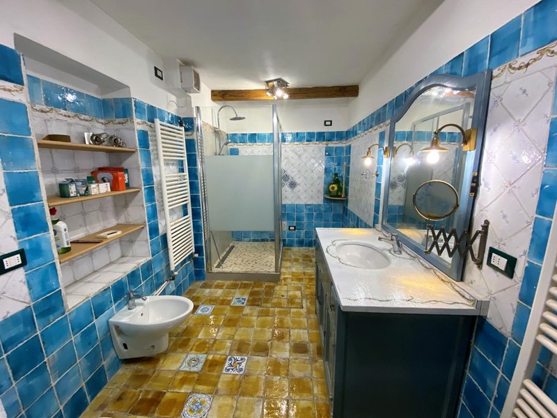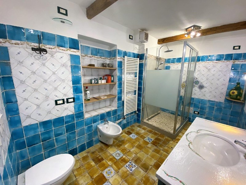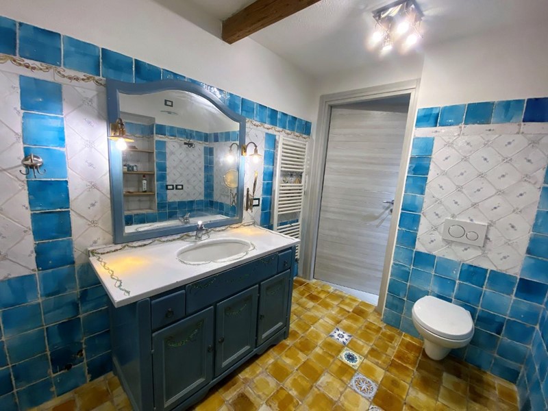 Dal soggiorno, tramite scala in legno, si accede al piano primo dove troviamo una camera da letto matrimoniale ed altro servizio igienico con box doccia e finestra.