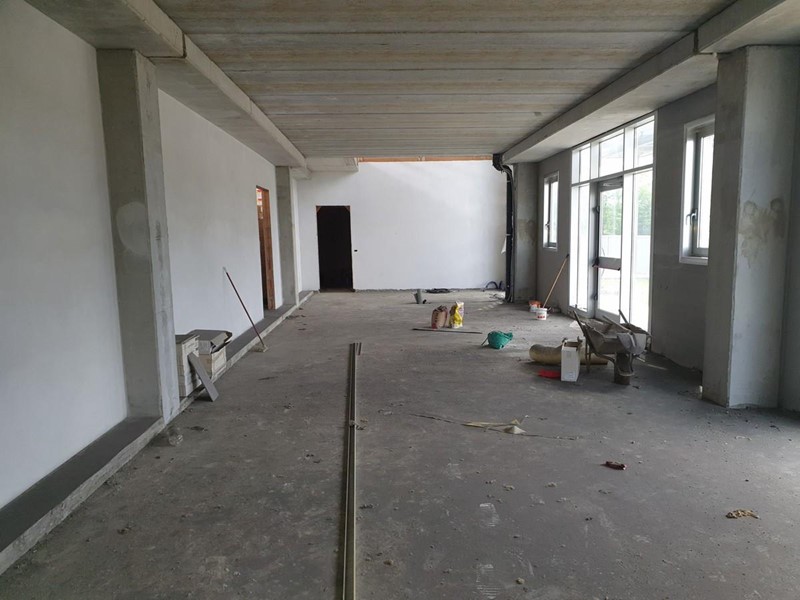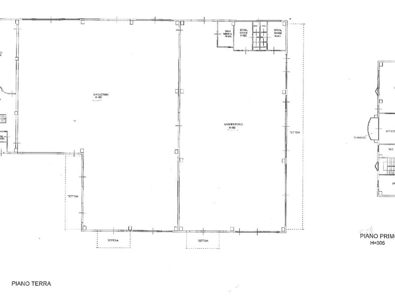 Così composta: un ampio locale con altezza di 8metri e uno più piccolo (circa 550mq) alto 5,5metri, uffici, spogliatoi divisi per uomini e donne con bagno e locali docce