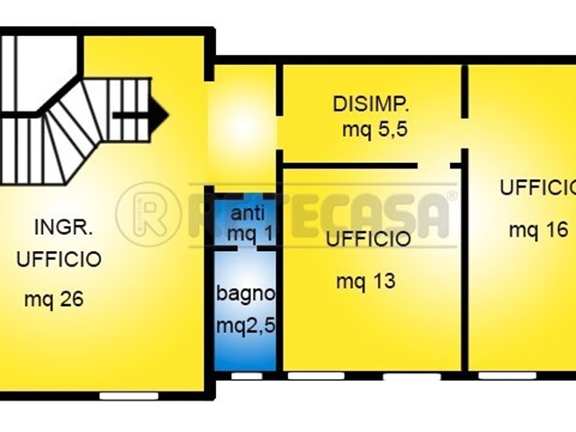- ufficio al piano mezzanino con vano scala esclusivo di 64 mq calpestabili composto da: ingresso su un primo ambiente open space, bagno con antibagno, 2 grandi stanze e disimpegno in cui si può inserire un capiente armadio da utilizzare come archivio. L’unità può essere agilmente trasformata in un bicamere di generose dimensioni. € 350.000