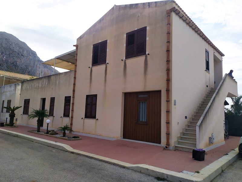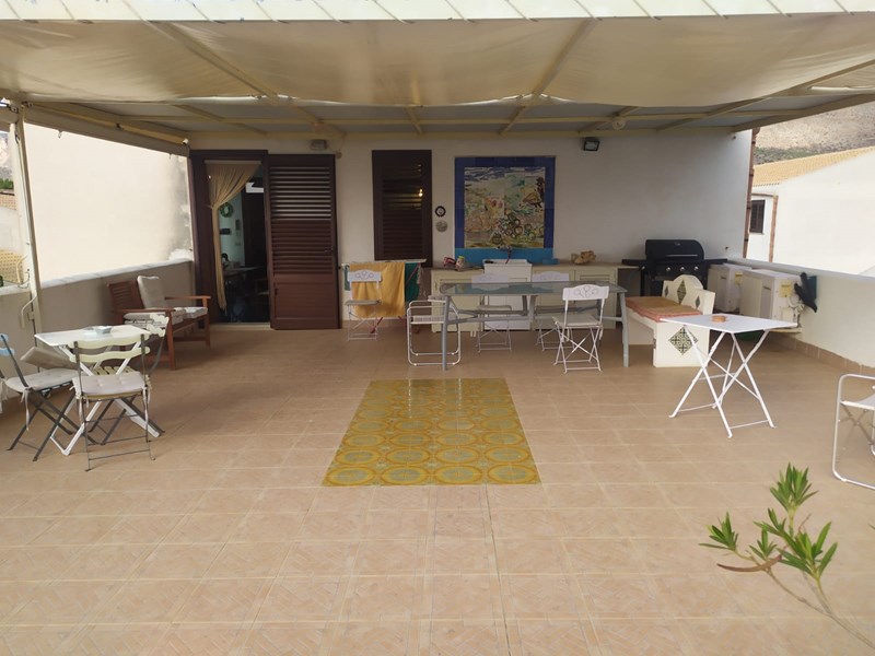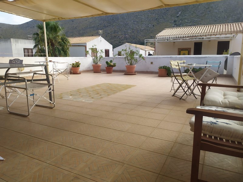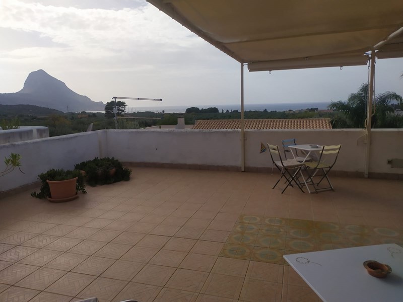 L'abitazione, con accesso tramite una scala esterna, è composta da vano ingresso, soggiorno - pranzo con angolo cottura in muratura (maioliche), due vani letto, due bagni, ampia terrazza con vista sul Golfo di Cofano.