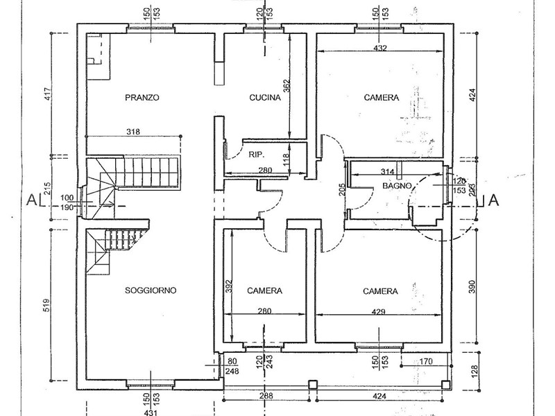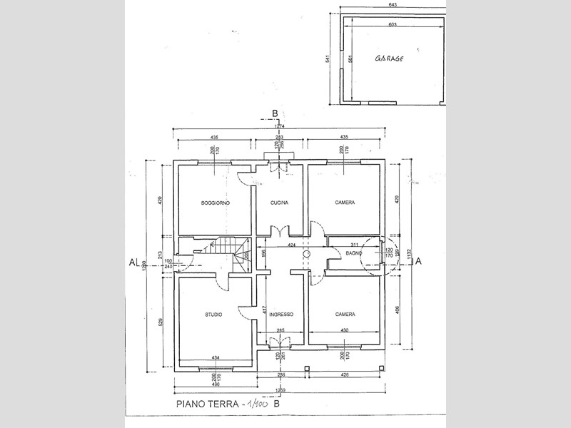 appartamento Piano terra: ingresso da loggia, cucina, soggiorno, 3 camere matrimoniali e bagno oltre disimpegno e garage per totali circa 185 mq