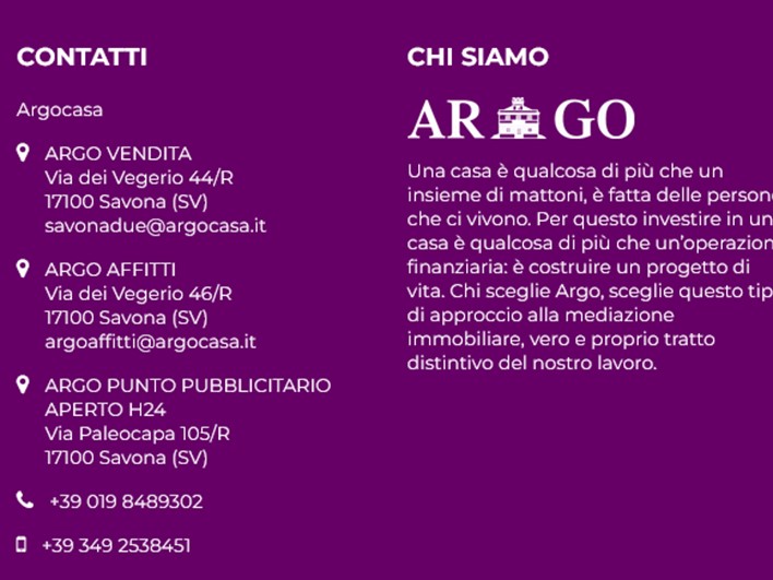 Per questo investire in una casa è qualcosa di più che un’operazione finanziaria: è costruire un progetto di vita. Chi sceglie Argo, sceglie questo tipo di approccio alla mediazione immobiliare, vero e proprio tratto distintivo del nostro lavoro.