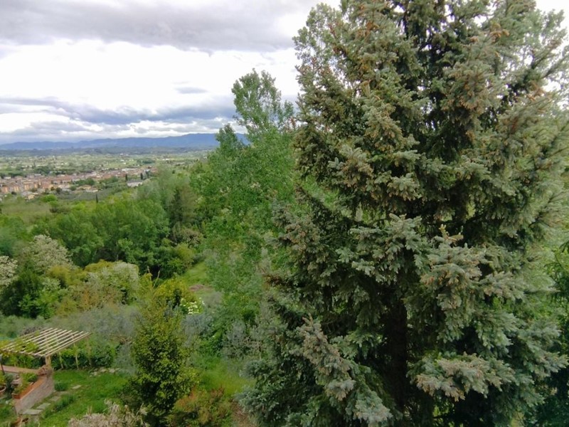 A due passi dal centro storico in posizione panoramica Casa a solo di complessivi mq.380 c.a., divisa in due appartamenti, con resede e giardino. Le abitazioni, per un totale di mq.280 c.a., sono così composte: quella del piano primo da ampio ingresso dal quale si accede alla cucina con camino e doppio accesso ad una grande terrazza abitabile coperta da una tettoia, soggiorno, due camere matrimoniali e bagno con doccia e finestra; quella a piano terra è composta da ingresso, cucina, soggiorno, disimpegno notte, due camere matrimoniali e bagno con vasca; completano la proprietà locali ad uso cantina ed una capanna adiacente l'abitazione, per un totale di mq.99 c.a., oltre a 2 ha di terreno circostante a giacitura collinare.
