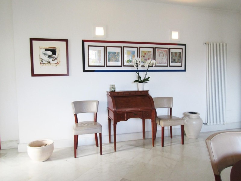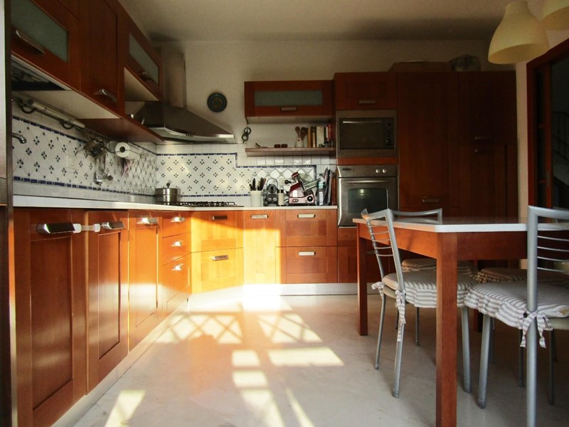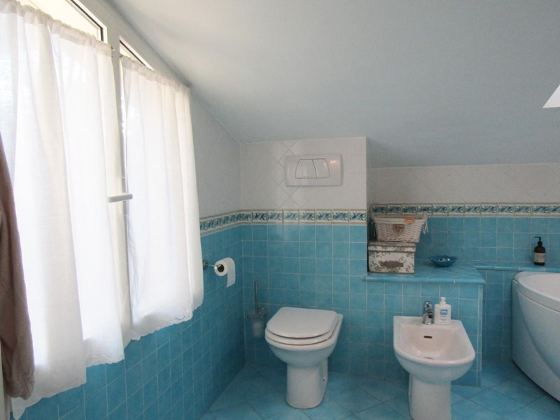 Al secondo piano ampia zona giorno con grande sala con camino e zona pranzo, cucina abitabile, bagno in marmo con doccia, due terrazze a perimetro a vista aperta .