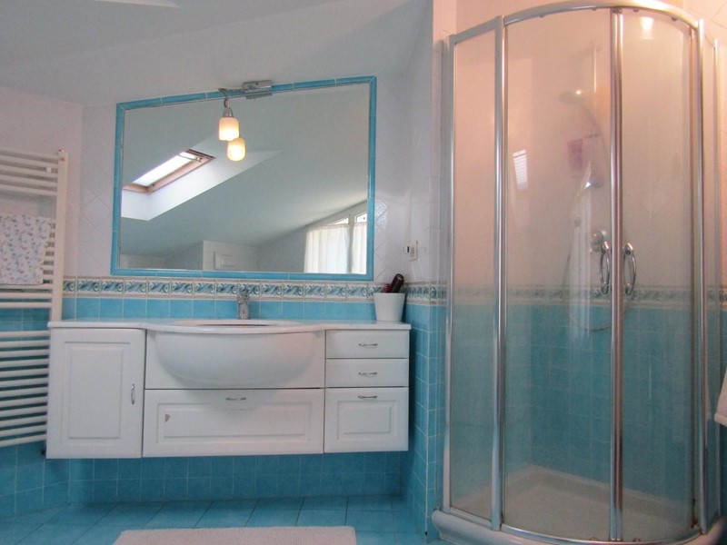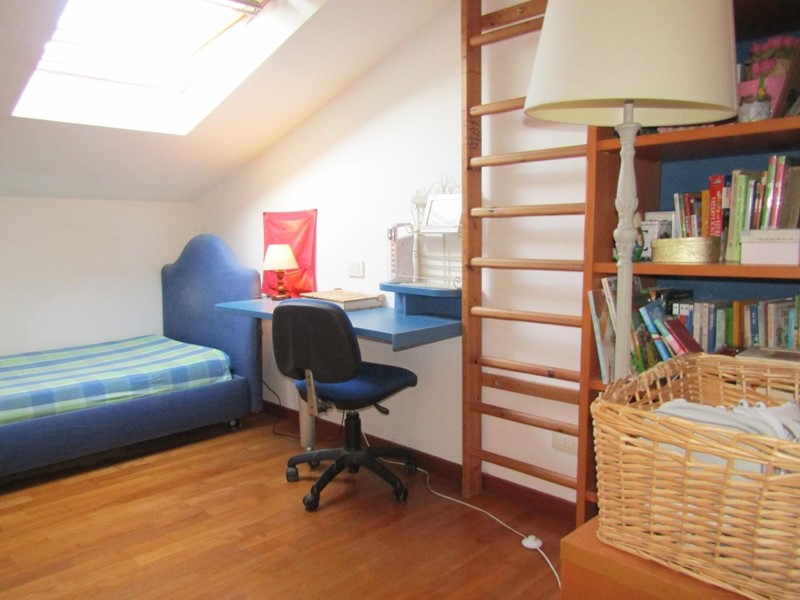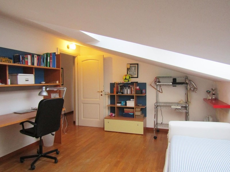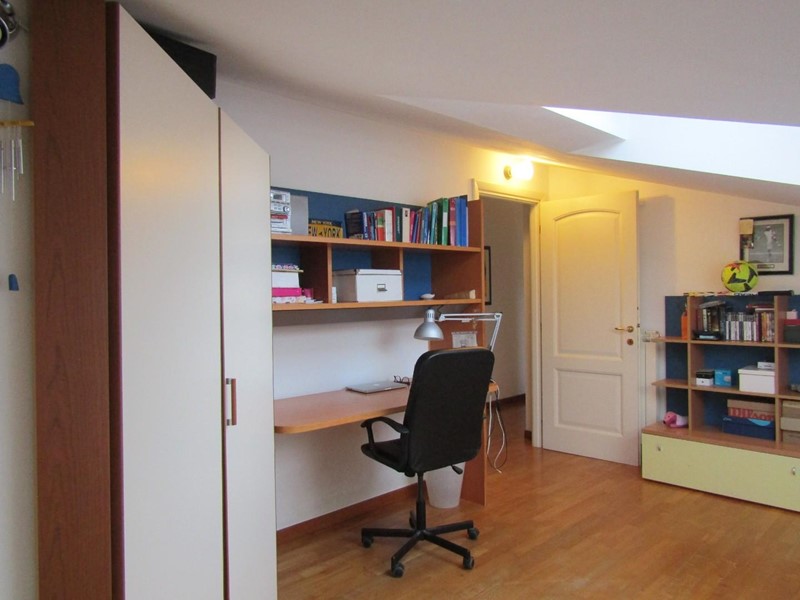 Al Piano superiore e ultimo dell' edificio, zona notte con due camere matrimoniali di cui una con ampia finestra a tetto, Velux elettriche e l'altra con terrazza a tasca, una camera singola e uno studio, due bagni entrambi con vasca idromassaggio e doccia .
