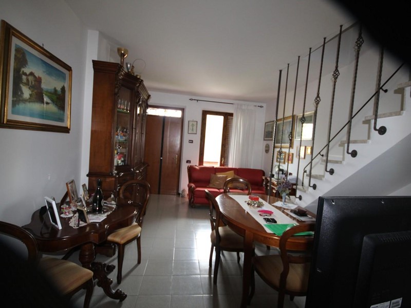 Costalpino - Siena - In fabbricato a schiera con ingresso indipendente, appartamento al piano primo con accesso nel soggiorno, cucina con balcone, due camere un bagno finestrato al piano superiore ampia mansarda con bagno e comodi ripostigli nel sotto tetto, al piano seminterrato ampio garage. Buone le condizioni generali.