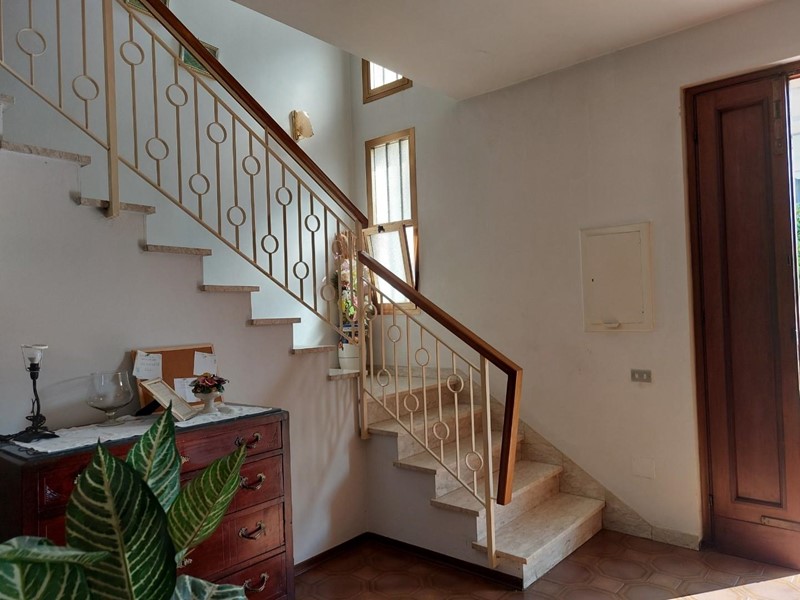Dall'ingresso parte la scala che ci permette di arrivare al piano primo nel quale troviamo oltre al disimpegno notte, tre camere matrimoniali di cui due con terrazzo e bagno.