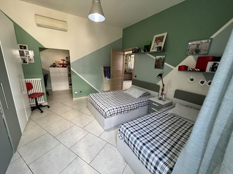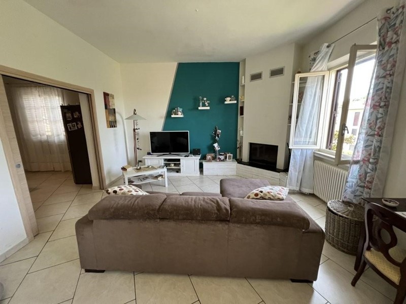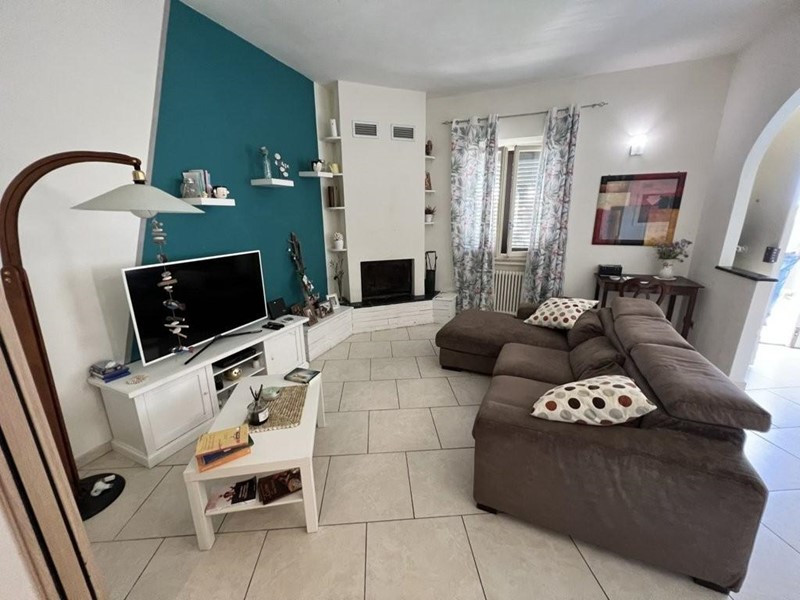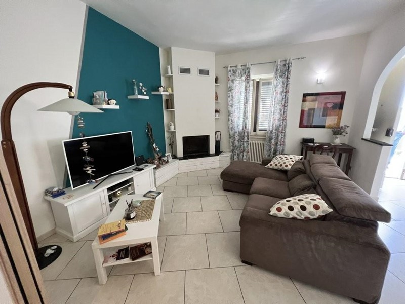 In palazzina bifamiliare, al piano primo, ingresso indipendente da scala esterna, appartamento di circa mq 110 utili, così composto: ingresso, ampio soggiorno con camino, cucina abitabile comunicante con il soggiorno a mezzo di arco, camera matrimoniale, camera doppia, vano guardaroba (studiolo) terrazzo e corte e locale tecnico.