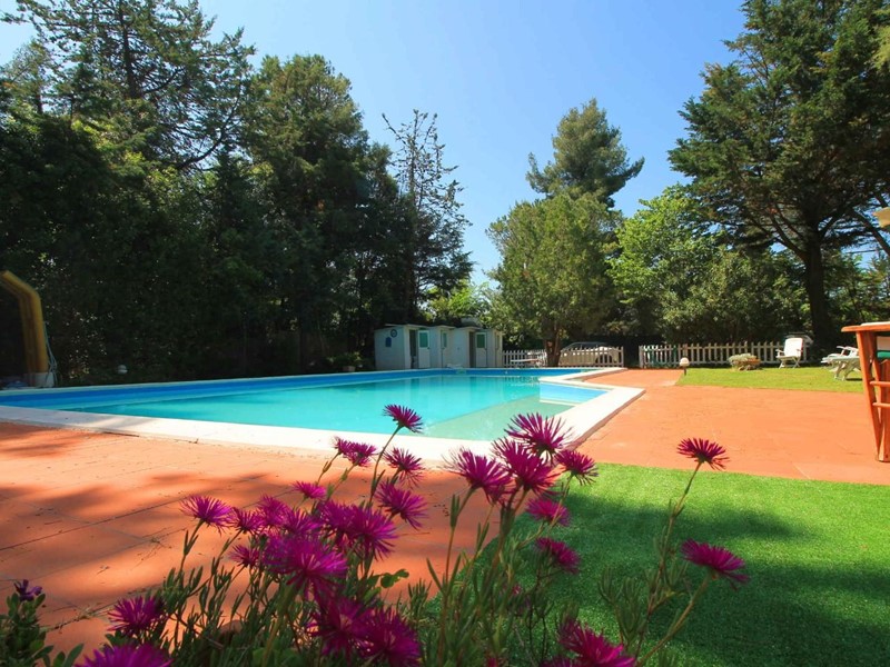 I fabbricati si trovano all'interno di un ampio giardino e terreno di circa 8.000 mq totalmente recintato con 2 cancelli carrabili e piscina in muratura.