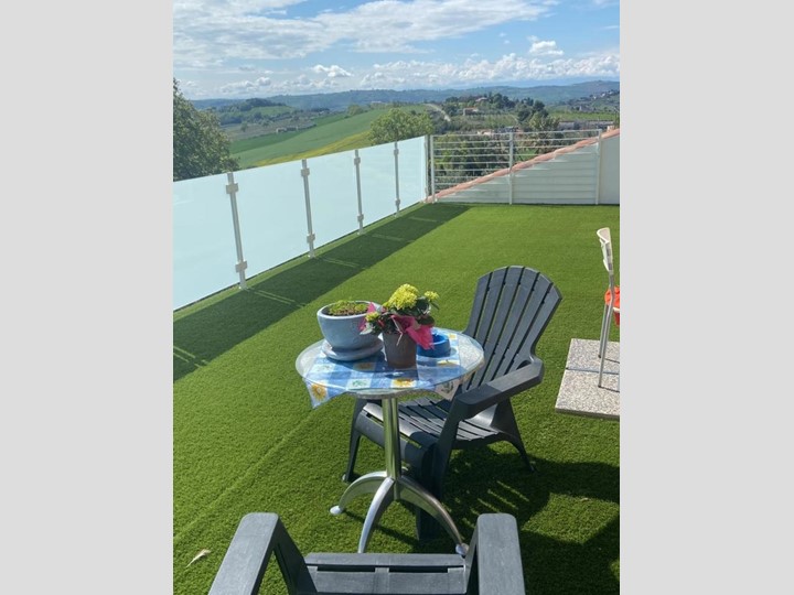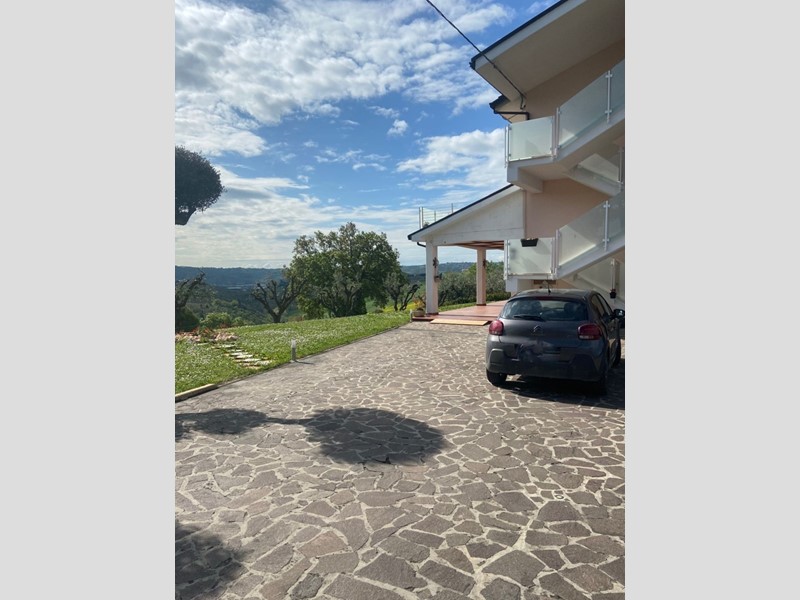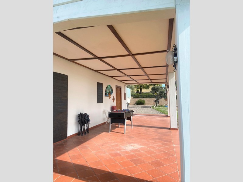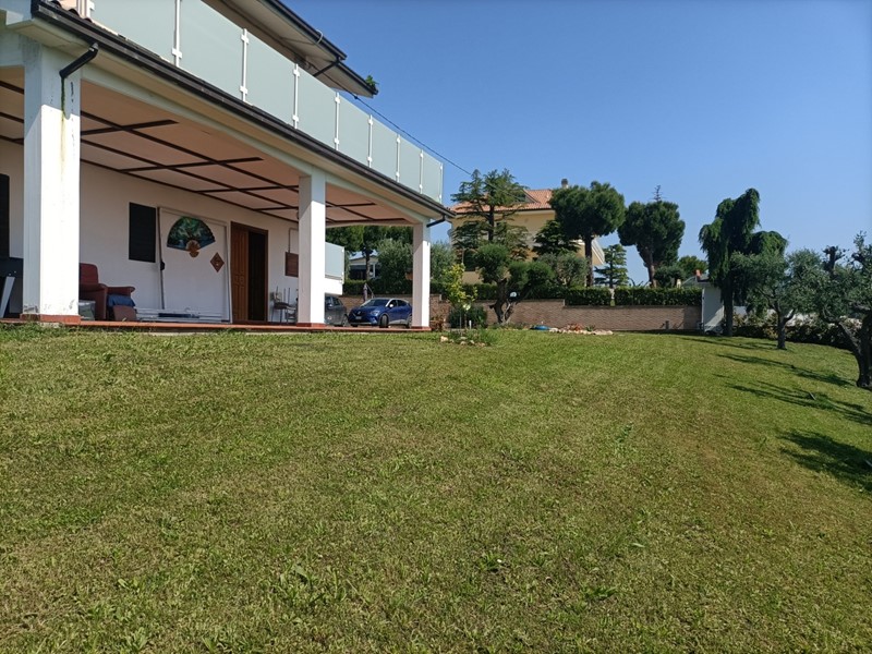 MONTEPRANDONE - in zona collinare a circa 9 km dal mare, casa indipendente di circa 340 mq su tre livelli. L'immobile è composto da: piano terra di circa 130 mq al grezzo attualmente adibito a deposito e garage di circa 13 mq; piano primo di mq 130 circa con ingresso su soggiorno che affaccia su un ampio terrazzo di circa 50 mq, sala da pranzo, cucina, due camere matrimoniali, un bagno con finestra e doccia, una lavanderia; piano sottotetto di circa 130 mq con altezza max 2.70, allo stato grezzo. Completano la proprietà tre balconi per un totale di circa 17 mq ed un giardino di circa 2100 mq in parte piantumato, molto curato e completamente recintato con cancello elettrico. Ha infissi in legno con doppio vetro, aria condizionata, impianto fotovoltaico di 6 kw. Riferimento agenzia 6570. DiLeoImmobiliare