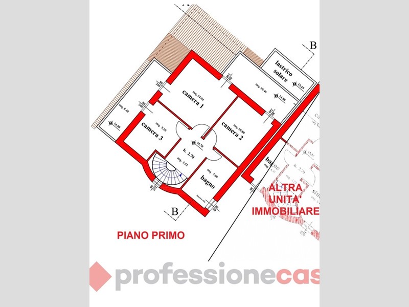 Da una scala angolare progettata con criterio, si accede al piano superiore, piano primo, dove troviamo, corridoio, tre camere ognuna con accesso su balcone, bagno finestrato.
