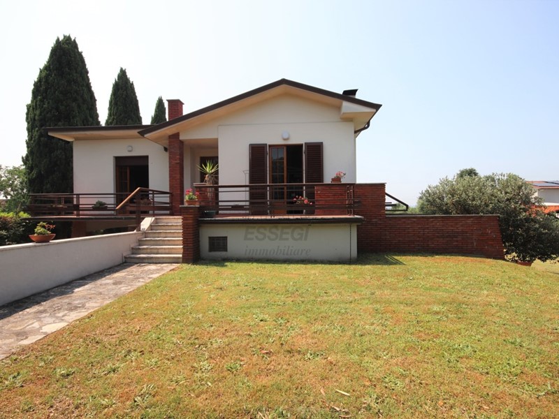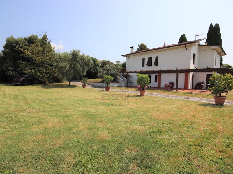 Essegi immobiliare propone in vendita villa anni' 80 di circa 220 mq, in buono stato di manutenzione,  elevata a due piani, ciascuno dei quali dotato d' ingresso indipendente e tra loro comunicanti a mezzo di scala interna, corredata da un ampio loggiato di circa 60 mq, d' invito all' abitazione e giardino di circa 1500 mq. L' ingresso è impreziosito da un ampio terrazzo, che conduce al  piano primo che è composto da:  ingresso, soggiorno, cucina abitabile (predisposta) , disimpegno, tre camere e bagno, oltre scala di collegamento interna con il piano terra, sovrastante soffitta uso sottotetto. Al piano terra, ampio porticato (chiudibile per un piacevolissimo giardino d' inverno) che accede a ingresso, caratteristica  cucina- soggiorno con camino, disimpegno, due ripostigli, locale utilizzato come camera, antibagno, bagno, scannafosso di protezione al piano terra, oltre scala di collegamento con il piano primo La villa si presenta in perfette condizioni con impianti elettrico e riscaldamento funzionanti e funzionali. Finiture di periodo ma pregiate con materiali di finitura di primissima scelta. La sua attuale distribuzione ne può permettere funzionalmente l'uso a due nuclei familiari con un appartamento autonomo a piano o anche un uso di ufficio legato alla sovrastante abitazione. Il grande giardino la rende una proposta molto interessante. Classe Energetica G. Richiesta €.395.000,00 trattabili