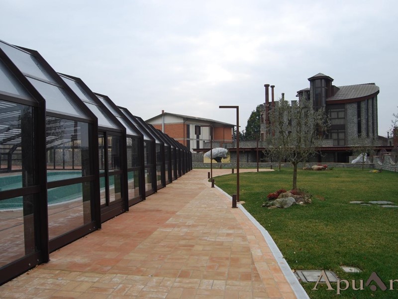 "Antica Fornace" Complesso immobiliare con destinazione ricettiva alberghiera di lusso, ricavato dalla sapiente ristrutturazione ed ampliamento di un antica fornace. Sono comprese nel complesso la piscina, un parco di circa 4.500 mq ed un parcheggio. Il fabbricato è composta da quattro piani fuori terra. Nel PIANO INTERRATO grande vano ad uso sgombero, dispensa cucina con montavivande, spogliatoi e servizi per il personale, locale deposito materiali per le pulizie, centrale termica, collegato con ascensore e scale interne; nel PIANO TERRA trova posto il ristorante (completo di tutte le attrezzature), servizi igienici, hall ingresso, bar, reception/front office, servizi igienici ospiti, bar, disimpegni e vano ascensore. L'ingresso alla hall dell'albergo è protetto da un grande porticato, della superficie di circa 40 mq, dotato di doppia porta d'ingresso, tramite questo portico è possibile scendere dall'auto protetti; al PIANO PRIMO si trovano due camere suite, ciascuna composta di zona giorno, zona notte e bagno esclusivo con idromassaggio, oltre ad ampia terrazza solarium di uso comune con vista sul parco e la piscina; Al PIANO SECONDO si trovano altre due camere suite ciascuna composta di zona giorno, zona notte e bagno esclusivo con idromassaggio, oltre ad ampia terrazza solarium; al PIANO TERZO ed ultimo, la quinta camera/suite panoramica con grandi vetrate e terrazza solarium ad uso esclusivo. All'interno della proprietà struttura da ultimare, con la possibilità di ricavare ulteriori 14 camere/suite.