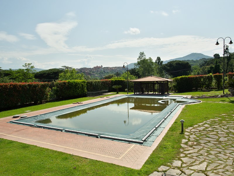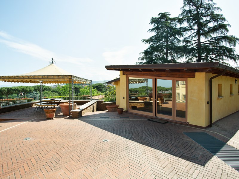 Marino – nel cuore dei Castelli Romani, proponiamo in vendita un’elegante soluzione abitativa con eccellenti finiture e dettagli di pregio. Location polifunzionale, immersa nel verde, con ampissimi spazi ed in un contesto riservato, ideale come dimora di residenza/rappresentanza o struttura ricettiva. Un complesso residenziale su poggio dominante di una superficie di 5000 mq diviso in tre unità immobiliari interconnesse e con possibilità di essere comunicanti tra loro. La proprietà dista 3 km dall’aeroporto di Ciampino, 4 km dalla stazione ferroviaria di Ciampino e 7 km dal GRA. Superficie coperta abitativa padronale di circa 620 mq disposta su due livelli. Nella zona della taverna sono presenti una sala biliardo, una sala fitness/cinema ed una sala Spa con doppi servizi che si deve attraversare per poter raggiungere la piscina. La proprietà presenta locali esterni, distinti e separati tra loro e dalle unità abitative, composti da camere e servizio per gli ospiti. Nella proprietà sono presenti un ufficio con servizio di circa 30mq ed una piccola dependance con servizio di 40 mq circa. Completano la proprietà n. 6 garage posti sul piazzale antistante l’ingresso delle unità abitative; un patio coperto posto all’esterno delle abitazioni; una costruzione con elementi in legno e muratura tradizionale in mattoni romani con una zona cucina a gas aperta, lavello ed una zona con forno a legno e barbecue annesso. La soluzione immobiliare presenta un impianto fotovoltaico da 26 kWh. Per ulteriori informazioni sulla location siamo lieti di accogliervi presso i nostri uffici.