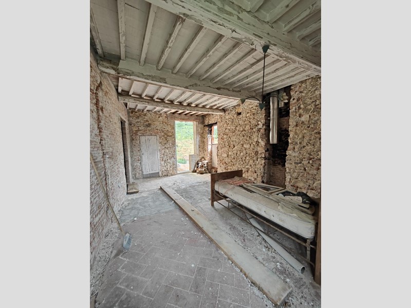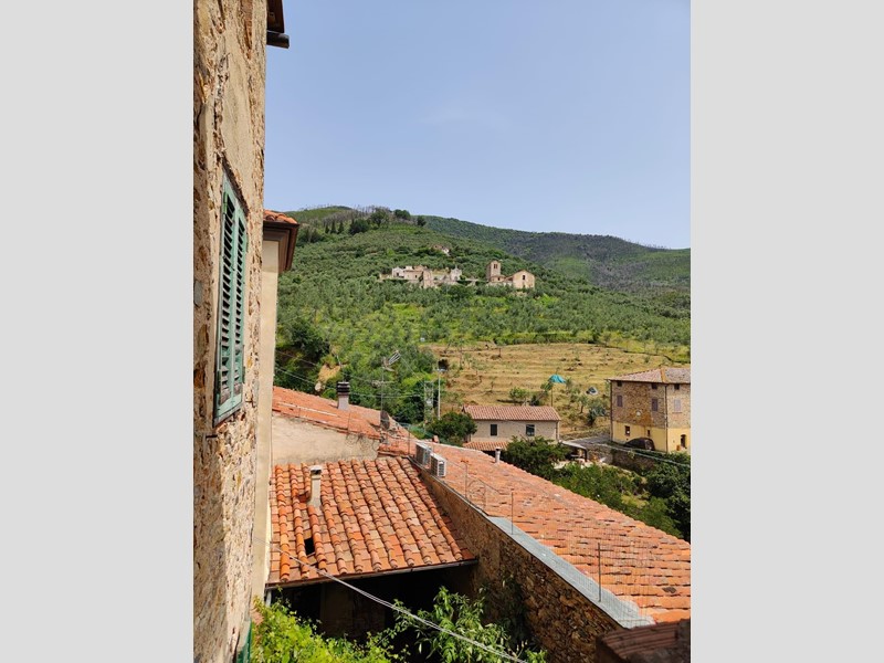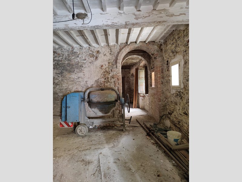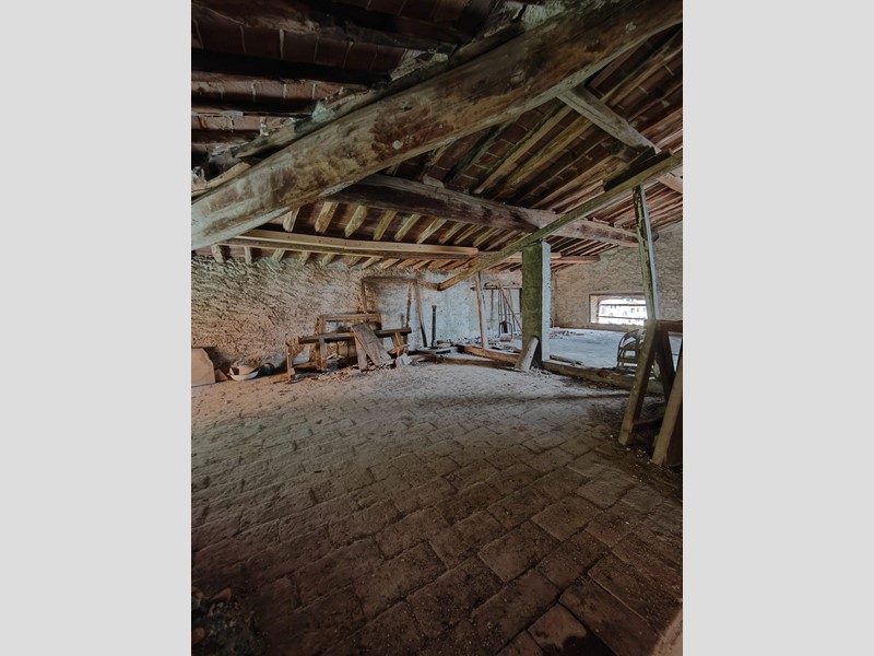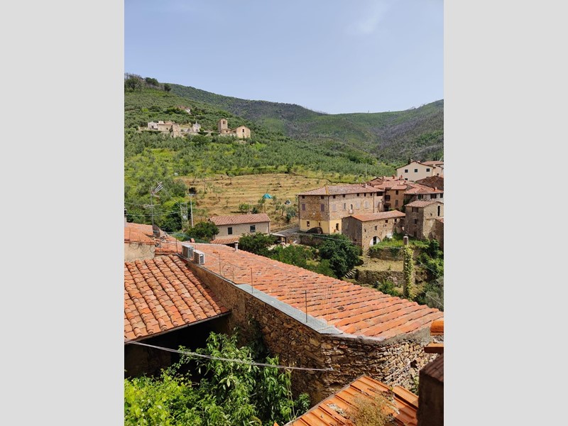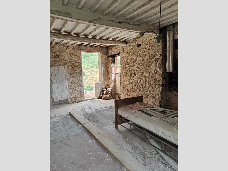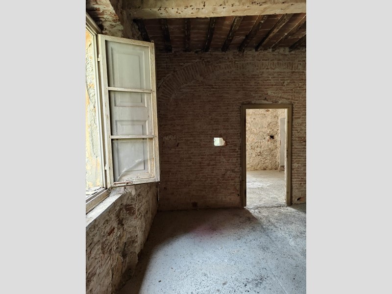 Al piano superiore, dove il proprietario ha cercato di mantenere il più possibile i pavimenti in cotto originali, troviamo una stanza con possibilità di ricavare sia un secondo bagno, sia un ulteriore camino. Procedendo sempre sul primo piano, troviamo una grande stanza con affacci sul paese da adibire, ad esempio, a soggiorno, che si collega a sua volta a un'altra stanza leggermente più piccola con accesso alla cucina abitabile.