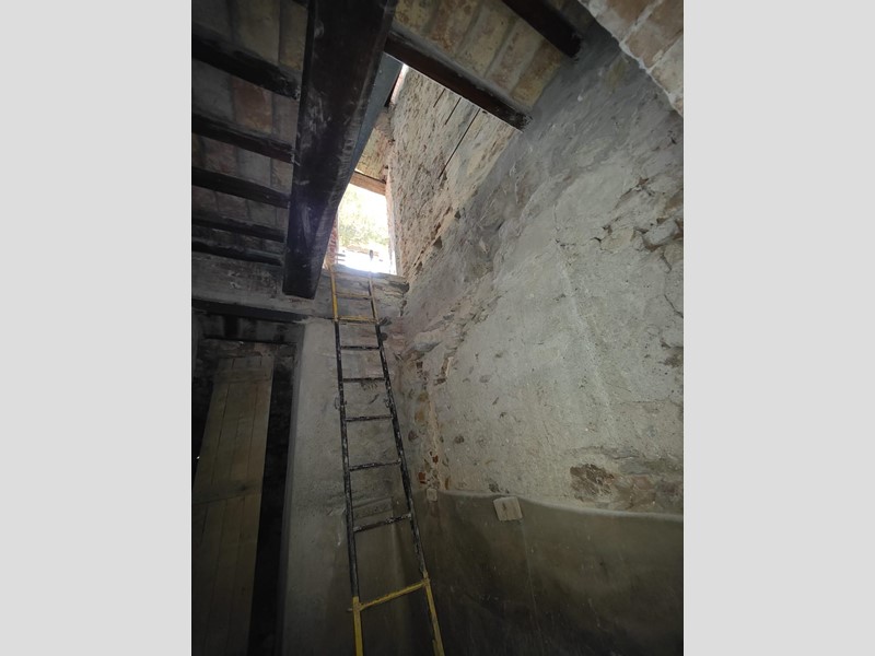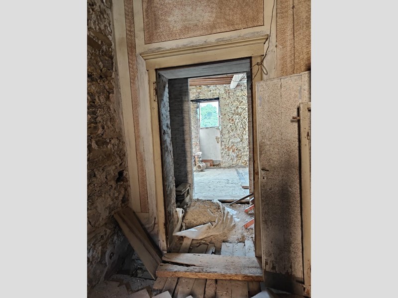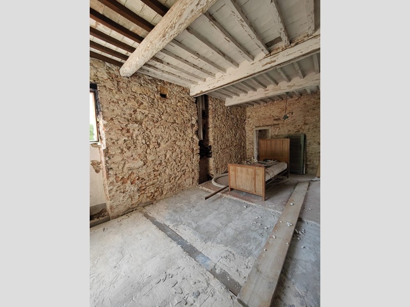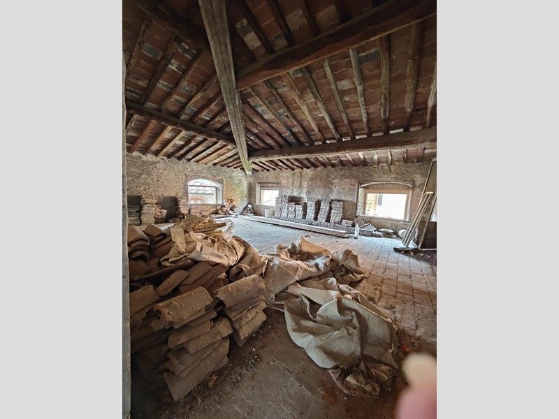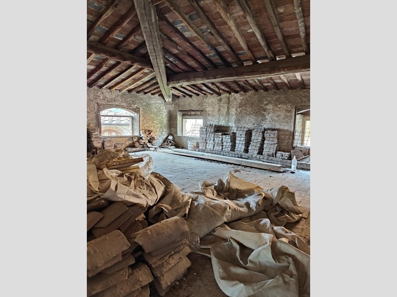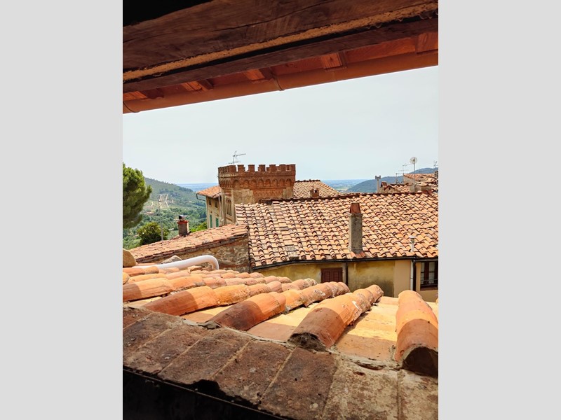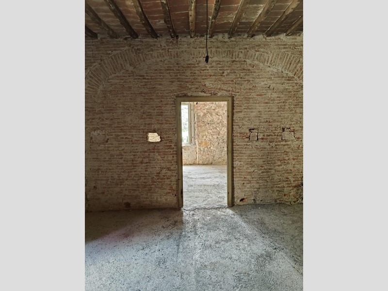 Al piano superiore, dove il proprietario ha cercato di mantenere il più possibile i pavimenti in cotto originali, troviamo una stanza con possibilità di ricavare sia un secondo bagno, sia un ulteriore camino. Procedendo sempre sul primo piano, troviamo una grande stanza con affacci sul paese da adibire, ad esempio, a soggiorno, che si collega a sua volta a un'altra stanza leggermente più piccola con accesso alla cucina abitabile.