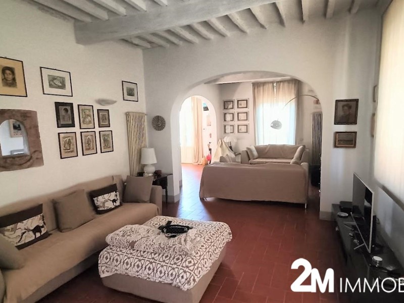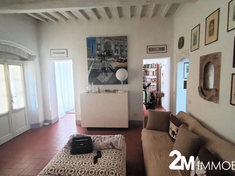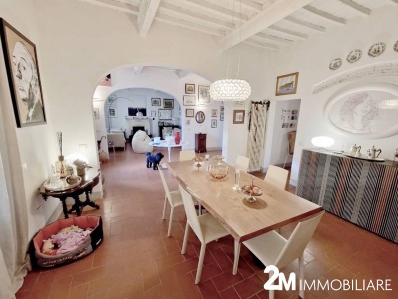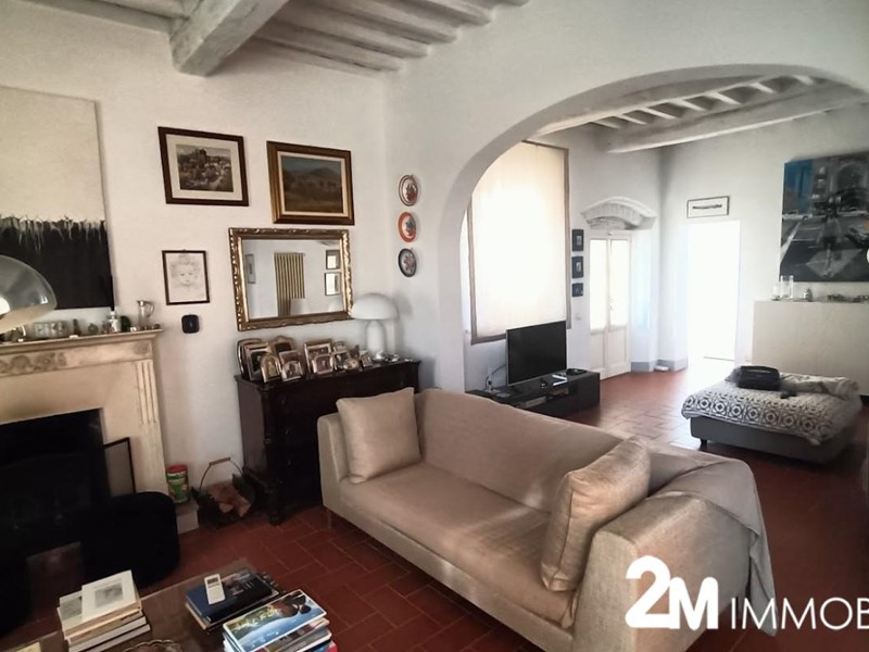 Il palazzo. DA POCO RISTRUTTURATO, si articola su due piani: al piano terreno l' ingresso è in una luminosa zona giorno su due lati della casa dove è presente il camino, percorrendo il soggiorno troviamo la zona pranzo con annessa cucina abitabile, il bagno e il bellissimo studio con libreria dove la scala interna conduce al piano superiore, che può essere accessibile, da antiche scale in pietra serena, alla zona notte dove troviamo un ampio disimpegno che distribuisce 4 camere, stanza armadi e doppi servizi.