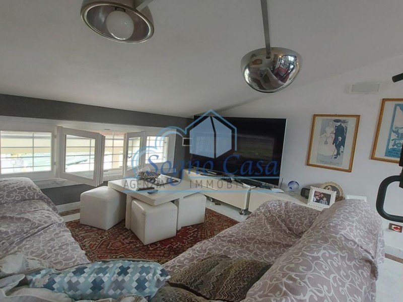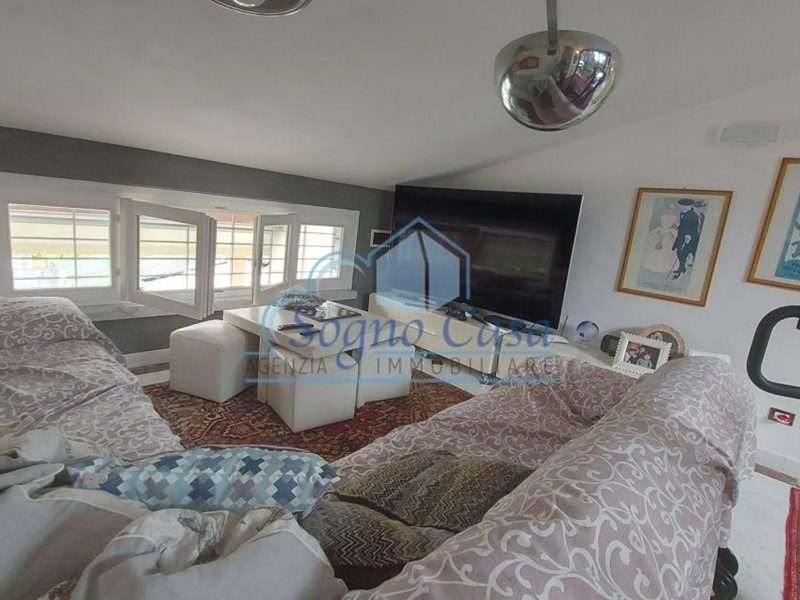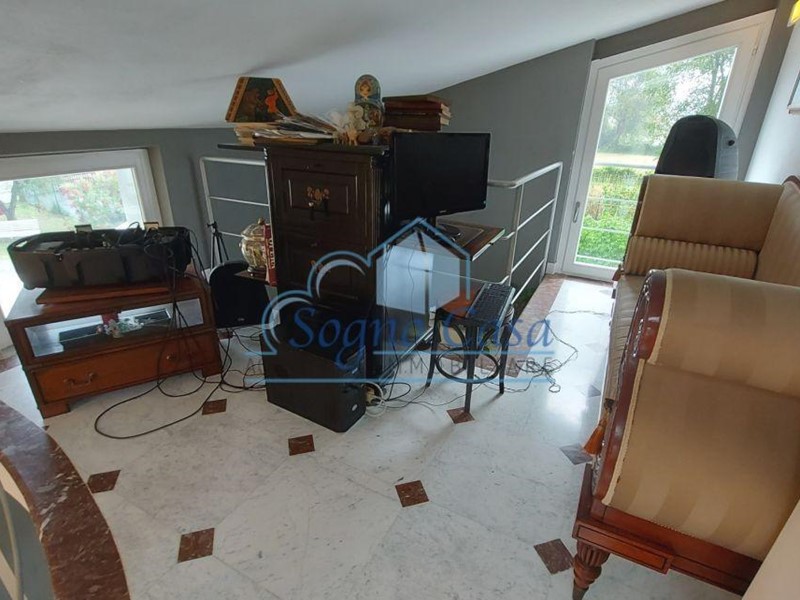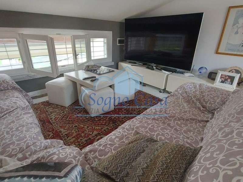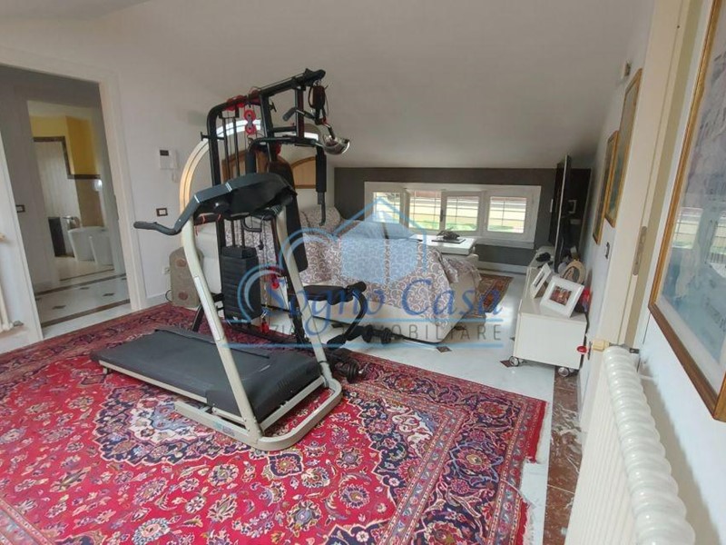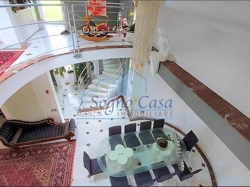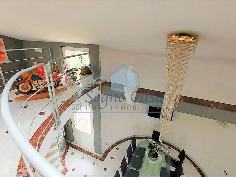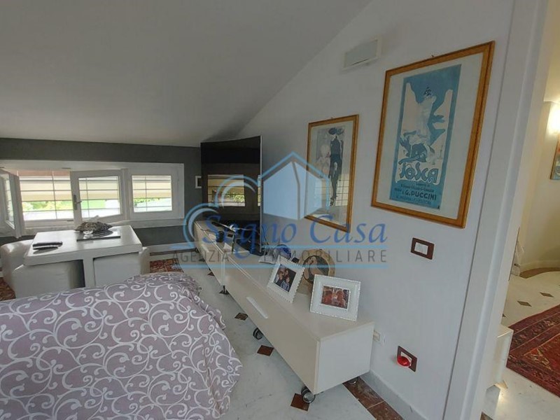 Al piano superiore, una ampia zona relax – tv con 3 divani, molto luminosa, zona palestra, e un ballatoio che permette uno splendido affaccio sul soggiorno. Il tutto molto sofisticato.