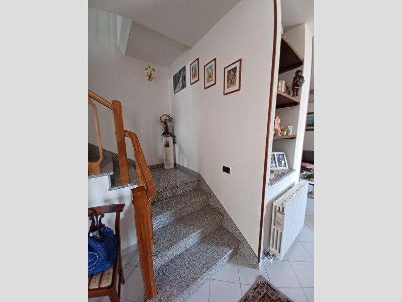 Spicchio-Sovigliana. In zona residenziale, in via percorsa solo da chi vi abita, porzione angolare di casa degli anni '90 in perfette condizioni, disposta su due livelli e costituita a piano terra da ingresso, ampio soggiorno con terrazzo dal quale si accede al giardino privato, cucina abitabile con ripostiglio-dispensa, bagno; al piano superiore da ampio disimpegno, due camere matrimoniali di cui una con bagno e terrazzo, camera singola, altro bagno con vasca, soffitta praticabile accessibile dal disimpegno notte mediante scala retrattile. Oltre a piano interrato collegato internamente da comode scale in muratura costituito da un ampio garage, una lavanderia con ripostiglio e un wc-ripostiglio. La casa è molto ben accessoriata da aria condizonata con split inverter che funzionano anche come pompe di calore, zanzariere, allarme, aspiratore centralizzato in tutti piano compreso il interrato, addolcitore. Tenuta molto bene, paragonabile ad un nuovo.