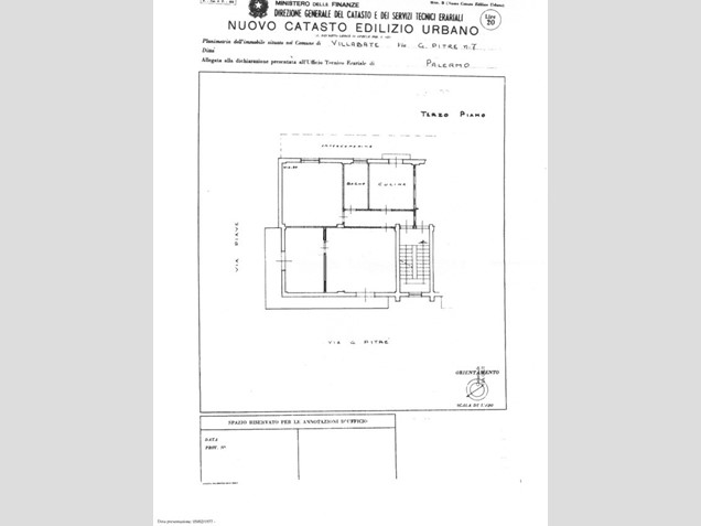 Villabate, adiacente al principale Corso Vittorio Emanuele, in Via Pitrè, in palazzina con sole sei unità abitative, luminoso appartamento di mq 102, con tripla esposizione, piano terzo senza ascensore.