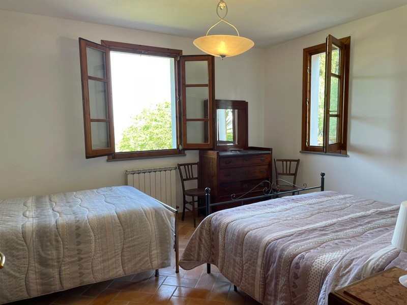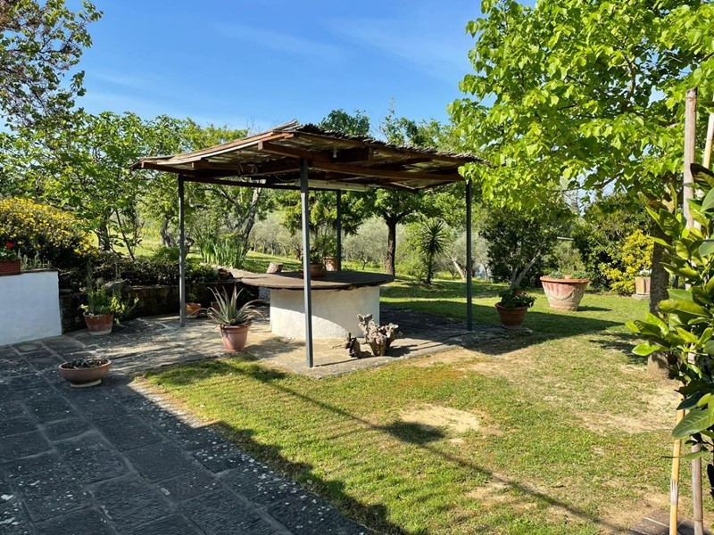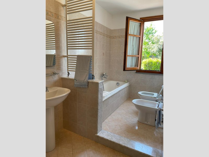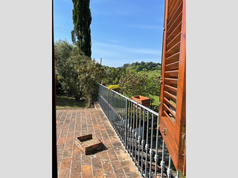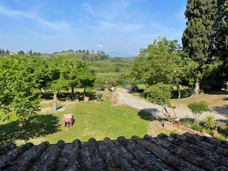 Sulle colline a sud di San Miniato, vendesi villa con ampio giardino circostante di quasi 3.000 mq. e bellissima vista panoramica sulla campagna e sulla cittadina. L’abitazione si si sviluppa su due livelli, per una superficie complessiva di 200 mq. circa. Ingresso al piano terra dove è situata la zona notte, con due camere da letto molto ampie e luminose e un bagno con vasca. Dall’ingresso una bella scala permette di scendere al piano inferiore seminterrato, che ospita una spaziosa zona giorno, composta da soggiorno e cucina/pranzo, entrambe dotate di caminetto ed affacciate sotto una loggia che le collega al giardino retrostante, posto ad un livello più basso rispetto al piano stradale. Al piano sono presenti anche una terza camera da letto matrimoniale ed un bagno, dotato di doccia. Completano la casa, sempre al piano sottostrada, alcuni locali di servizio la cui copertura diventa una terrazza usufruibile dal livello superiore