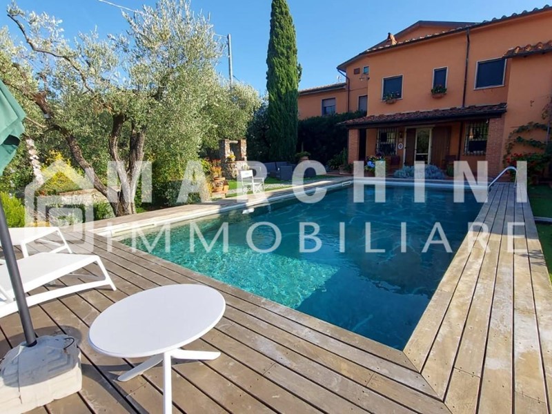 Rif. IA1648 -  IN ESCLUSIVA - ZONA LAPPATO - Proponiamo in vendita splendida villa colonica, ristrutturata di recente, immersa nel verde e con vista panoramica. Corredata da piscina, ampio giardino, terreno a olivi e maxi garage con multi parcheggio. E' divisa in due unità abitative pertanto adatta anche a due nuclei familiari. La prima unità al piano terra rialzato si compone di ingresso tradizionale, ampio salone munito di camino centrale e soppalco e ampie vetrate con vista sul paesaggio, limonaia per pranzi all'esterno anche in inverno, cucina abitabile; mentre al piano primo vi sono le due camere matrimoniali,  disimpegno, il bagno con antibagno. L' altra unità abitativa invece è composta da ingresso, sala, cucinotto, disimpegno, una camera matrimoniale, da scala interna si accede al piano primo dove troviamo due camere, ripostiglio e un bagno con finestra. Soffitta praticabile con finestre. Le due unità abitativa sono collegate fra loro al piano primo. Gli infissi sono in alluminio anodizzato ed in legno. Intorno alla casa vi è un ampio terreno a ulivi (circa 80).  L'immobile è in ottime condizioni di manutenzione, tetto rifatto. Pannelli solari e fotovoltaici. I pavimenti sono in cotto e parquet nell'unità principale, mentre nell'altra unità sono in granito di marmo, ceramica e graniglia. Classe energetica "D"