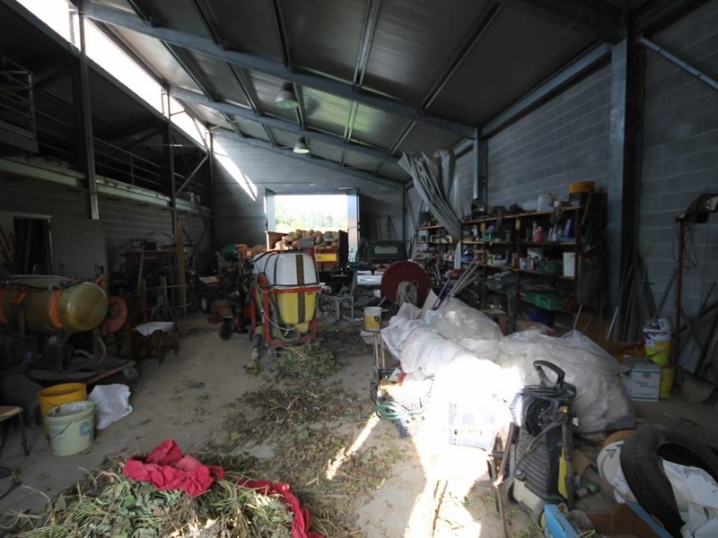 (Rif.3098) TORINGO Capannone agricolo recentemente costruito di 400 mq. suddiviso attualmente in due ampi vani, uno destinato a ricovero macchine agricole e deposito stoccaggio con un'altezza minima di 4,5 m. e un'altezza massima di 7.2 m.; l'altro locale destinato a lavorazione e stoccaggio con altezza di 3.10 m. All'interno del secondo vano è stato ricavato un locale per la vendita diretta, un ufficio e uno spogliatoio con servizio igienico. Il capannone è corredato da impianto fotovoltaico da 6 KW.; terreno agricolo circostante di 45.000 mq. su cui insiste una serra di 1000 mq.