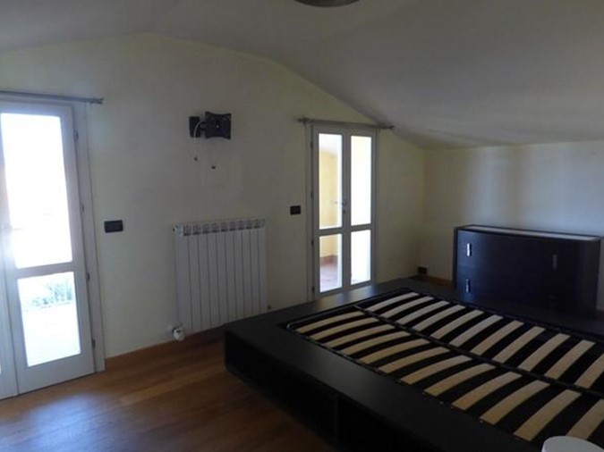 Villetta a schiera in complesso di recente costruzione di 180 mq disposta su tre livelli corredata da piccolo giardino fronte/retro l'abitazione. L'immobile è composto al piano terra da ingresso, ampio soggiorno, cucina abitabile e ripostiglio; al primo piano da camera matrimoniale, due singole, bagno con vasca e terrazza; al piano secondo mansardato da camera matrimoniale con bagno privato con doccia e stanza armadi, oltre a terrazza abitabile. Aria condizionata. A corredo due posti auto. Edificio in classe F.