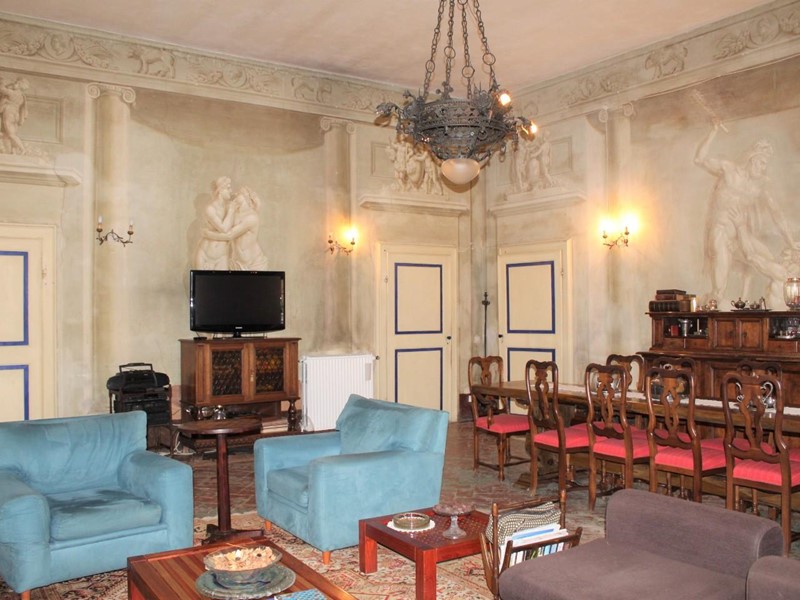 Palazzo signorile di circa 400 mq così composto: PT ingresso, ripostiglio sottoscala, locale di sgombero con affreschi e camino, altro ripostiglio; PP ingresso, cucina abitabile, grande soggiorno con affreschi, 2 camere matrimoniali, camera singola, 2 bagni e terrazzo abitabile; PS cucina abitabile con terrazzo abitabile, disimpegno, bagno con vasca, soggiorno con soppalco, dove è stato ricavato uno studio, camera matrimoniale e camera singola. Completa la proprietà il giardino di circa 140 mq con ripostiglio. L'immobile è caratterizzato da vani di ampia metratura. Ideale anche per 2 famiglie, in quanto l'immobile è già attualmente diviso in 2 appartamenti distinti ( uno al piano terra e uno al primo piano), Il palazzo si trova nel centro storico di Cascina. Rif. 5762