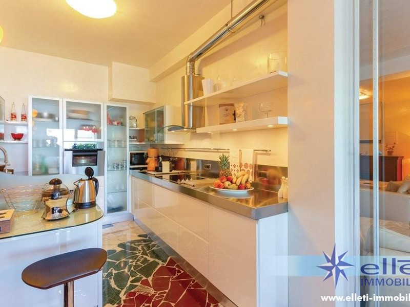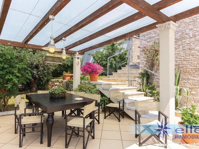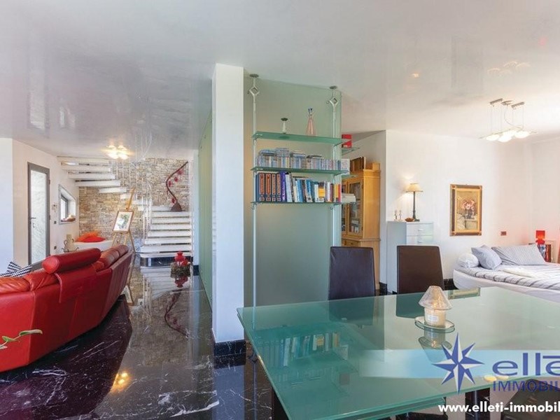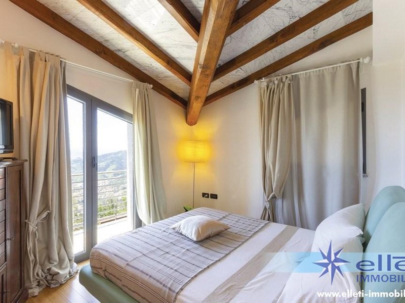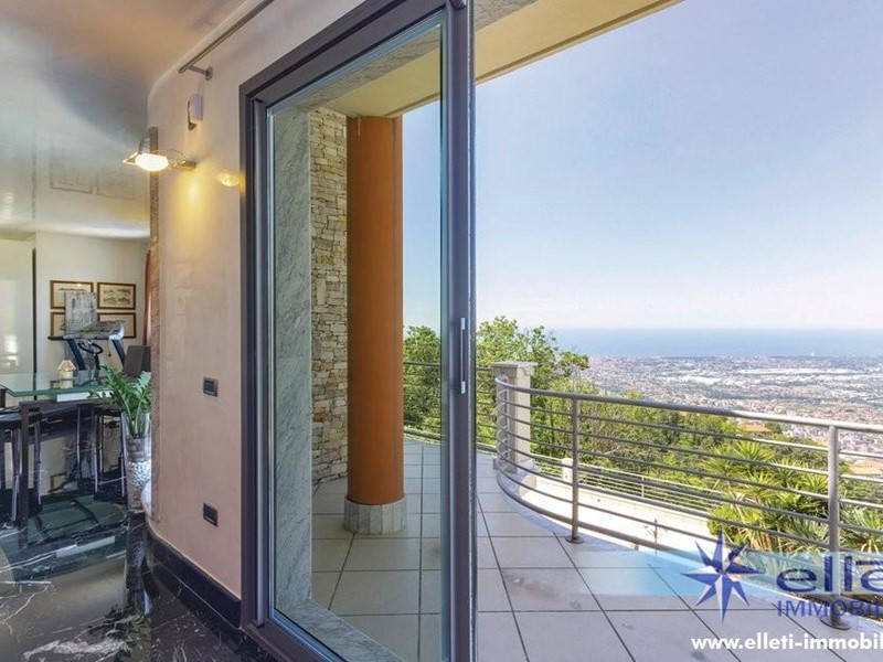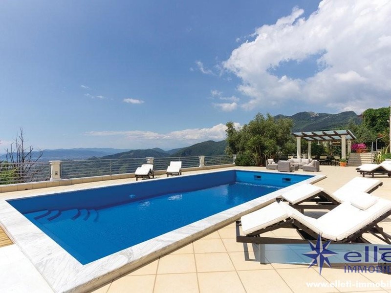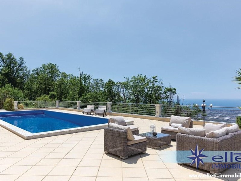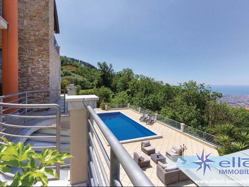 Loc. Tombara - Bella casa bifamiliare, libera su 3 lati, disposta su 3 piani, in posizione collinare e panoramica sul mare della Versilia, sopra il paese di San Carlo Terme (2 km), in una zona immersa nel verde, tranquilla, fresca e panoramica. Dalla casa e dal terreno si ha una bellissima vista sul mare della Versilia e fino alla costa Ligure, sulle colline alberate circostanti e, di scorcio, sulle rinomate cave di marmo delle Apuane. La casa dispone di uno spazio esterno privato e riservato di circa 1.700 mq, inserito nel contesto più ampio dell'intera proprietà (costituito da altre 2 abitazioni) a sua volta completamente recintato. Lo spazio esterno esclusivo si compone di una vasta terrazza pavimentata sul fronte del mare in cui troviamo una piscina (H:1-2,2 ml), illuminata e attrezzata con doccia esterna, gazebo attrezzato per pranzare. Nel giardino si trova anche un angolo con giochi per bambini e barbecue in muratura. L'area parcheggio per 2 posti auto dista circa 30 ml dalla casa, in uso comune; altri posti auto, liberi, si trovano subito all'esterno della proprietà. Piano terra con accesso diretto dalla zona piscina vista mare: veranda coperta; locale lavanderia; ampio soggiorno/pranzo; cucina con pareti vetrate; seconda cucina; soggiorno con caminetto; disimpegno; bagno WC; ripostiglio; camera matrimoniale con bagno con doccia e con accesso diretto all'esterno. Piano primo con accesso da terrazza scoperta vista mare che corre su 3 lati della casa: ingresso; soggiorno con accesso diretto alla terrazza; secondo soggiorno con accesso diretto alla terrazza; bagno con doccia; ripostiglio. Piano secondo: camera matrimoniale, balcone vista mare, bagno con vasca idromassaggio e doccia; disimpegno; camera singola con cabina armadi; ripostiglio; camera matrimoniale, terrazza coperta vista mare, bagno con vasca idromassaggio e stanza armadi. Impianto di riscaldamento indipendente alimentato a pellet. TRATTATIVA RISERVATA!!! Nel rispetto della privacy dei venditori, l'indirizzo e la posizione sulla mappa possono essere indicativi. Per informazioni ed eventuali chiarimenti non esitate a contattarci. I nostri recapiti: 0585 869495 - 346 6727590 - info@elleti-immobiliare.it E' possibile visionare altre nostre proposte sul sito www.elleti-immobiliare.it