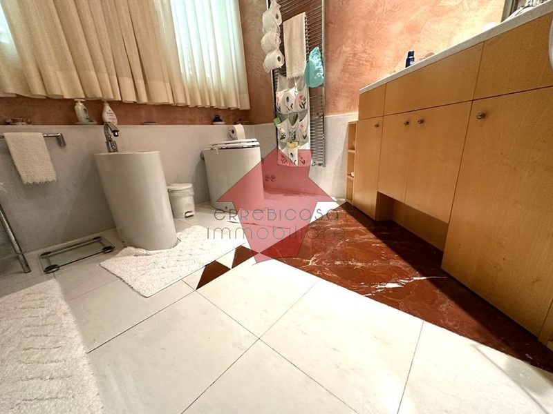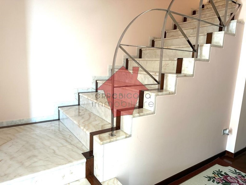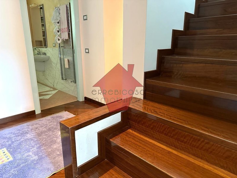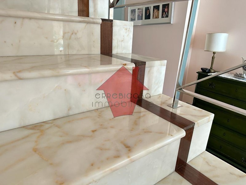 Fulcro dell'immobile è un' elegante scala in marmo e legno, intorno alla quale si sviluppa tutta la zona giorno, con triplo soggiorno open space, cucina abitabile, servizio, guardaroba/ studio.