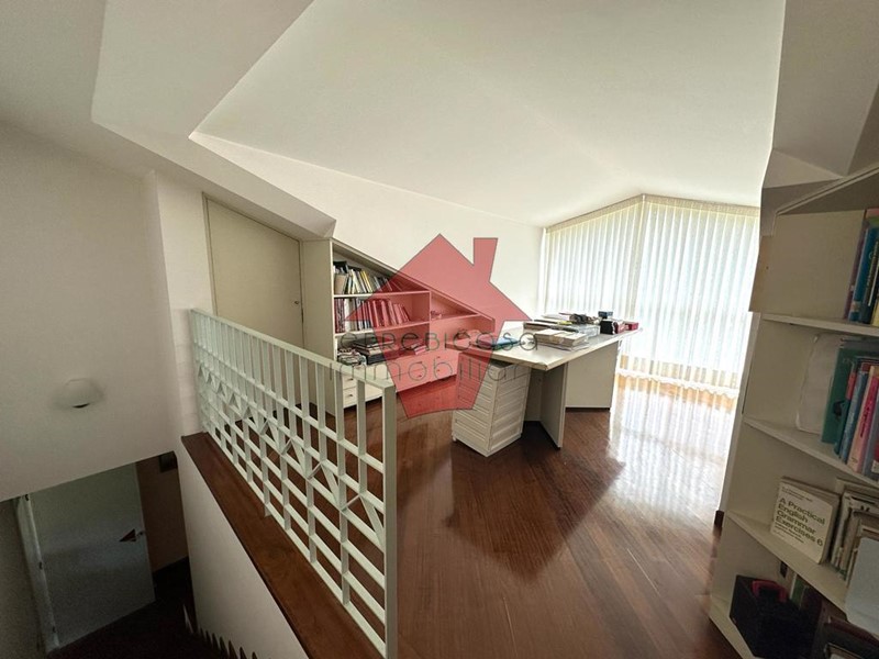 Al piano primo la zona notte che è composta da tre camere matrimoniali, doppi servizi finestrati e terrazza, la scala prosegue al piano superiore dove troviamo la mansarda fruibile come studio o quarta camera e solarium.