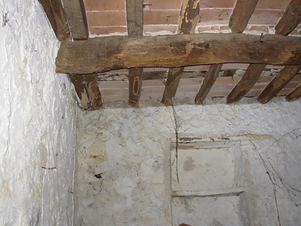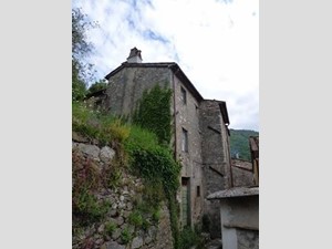 In zona verde e soleggiata, in antico borgo, terratetto finale da ristrutturare di 90 mq disposto su tre livelli composto al piano terra da ingresso, stanza uso cantina, bagno e ripostiglio; al piano primo da soggiorno con caminetto, cucina abitabile e ripostiglio; al piano secondo da ampio disimpegno, camera doppia e camera singola. Tetto rifatto. Edificio in classe G