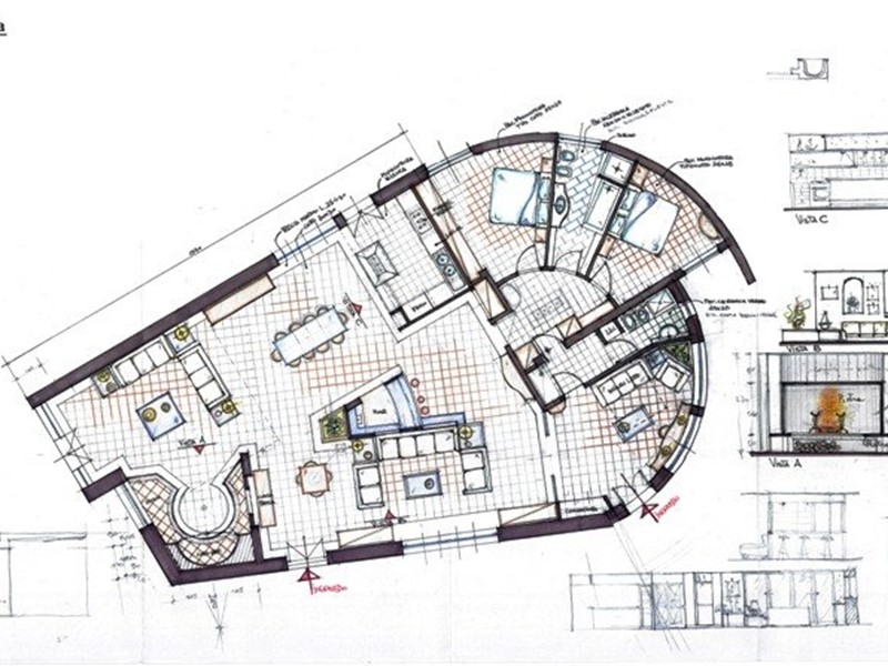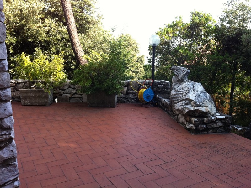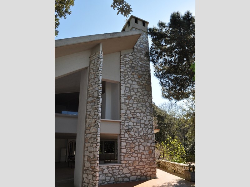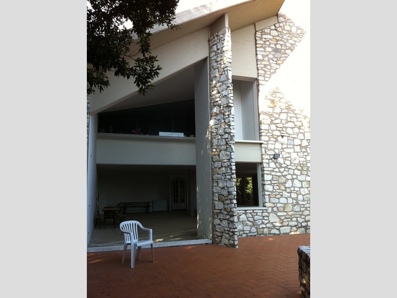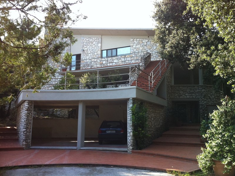 Carrara Bergiola Foscalina.Il fabbricato,con un originale corpo a forma circolare,è immerso in una stupenda area verde tipo macchia Mediterranea con rocce carsiche.Al momento la villa è suddivisa in 2 appartamenti,uno a piano terra lasciato al grezzo di 234 mq,ed uno a piano primo di 160 mq .Internamente ampia Cucina,Salone,3 Camere Matrimoniali 2 Bagni e terrazza panoramica.Al piano terra gli spazi sono da dividere.Splendida esposizione verso mare.La villa si presta ad esser abitata anche da tre nuclei familiari.