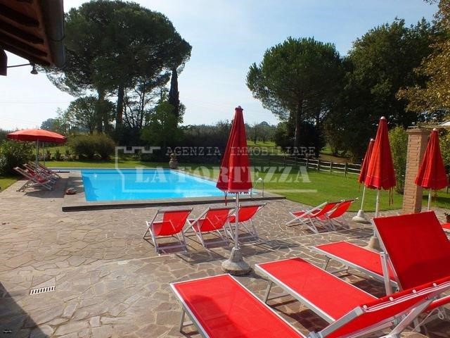 AD.ZE CRESPINA: immerso nella campagna toscana, ma prossimo alle principali vie di comunicazione, bellissimo casale contornato da circa tre ettari di terreno in parte coltivati ad olivi ed in parte ad alberi da frutto. L'immobile, disposto su due livelli, presenta la superficie interna suddivisa in cinque appartamenti indipendenti e si caratterizza per le ottime rifiniture in stile rustico con soffitti a travi e mezzane e per la pavimentazione in cotto. Ristrutturato a metà degli anni '90, è corredato di vari annessi agricoli ed impreziosito da una piscina. La vastità del terreno circostante permette di sviluppare eventualmente l'attività di allevamento cavalli.