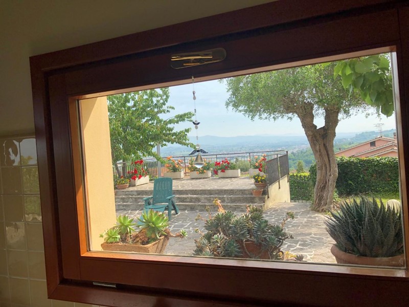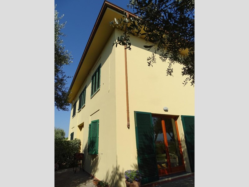 In una zona tranquilla, dominante e panoramica di una frazione collinare di San Miniato, vendesi porzione di casa, della superficie complessiva di circa 185 mq., che occupa la metà esatta di un edificio a due piani, risultando così libera su tre lati con resede e giardino di proprietà.