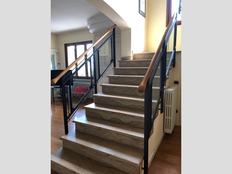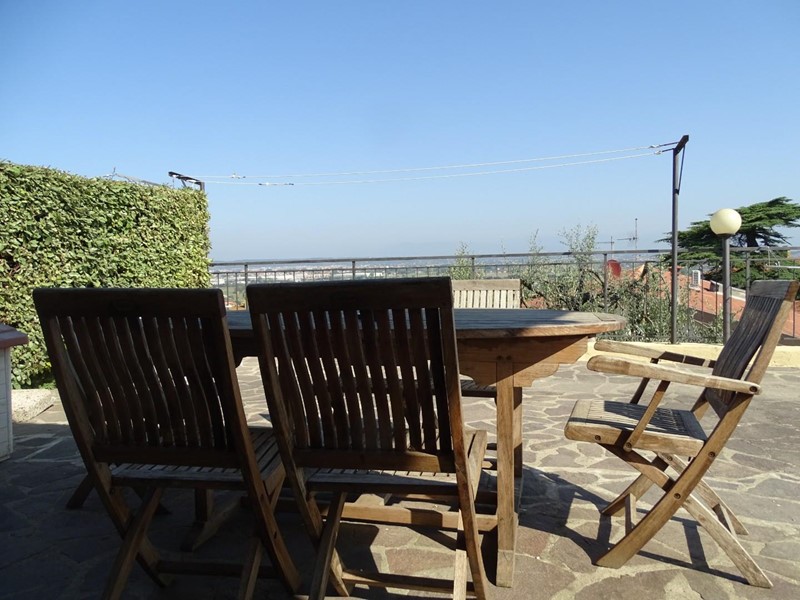 Da un ampio disimpegno, posto a sinistra della porta di ingresso, si entra nella luminosa sala da pranzo, in un bagno e, grazie ad una bella scala, si sale al primo piano. Qui si trova la zona-notte, con due camere matrimoniali, una terza camera leggermente più piccola, dalla quale si può accedere ad un ampio terrazzo, e il bagno principale dell’abitazione.