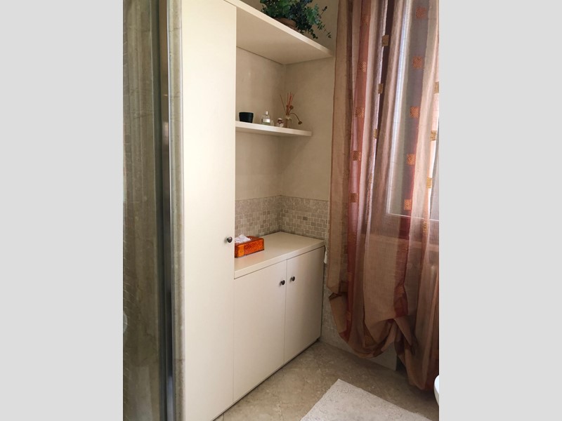 L’ingresso, indipendente, è al piano terra e immette direttamente in un vasto salone adibito a soggiorno, collegato alla cucina da una grande porta con ante scorrevoli. Dalla cucina si accede ad un ripostiglio-lavanderia e, attraverso una porta-finestra, al giardino circostante.