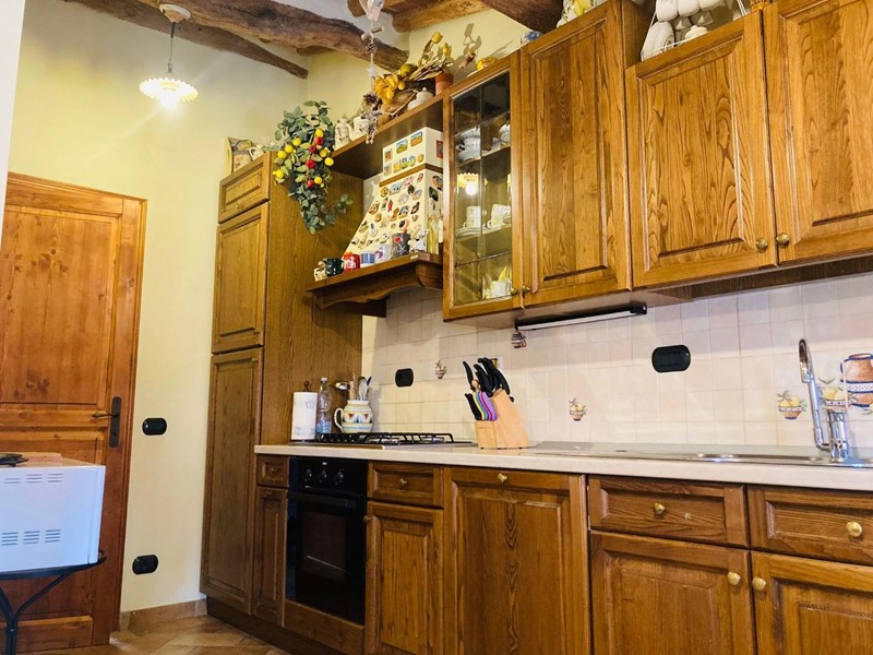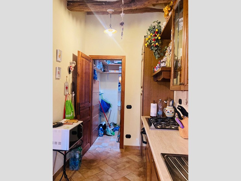 Caratteristico appartamento in centro storico, perfettamente ristrutturato con travi e travicelli. Posto al primo piano, con ingresso INDIPENDENTE. Composto da ingresso, cucinotto, soggiorno-pranzo, due camere matrimoniali, bagno e ripostiglio. Corredato di fondo, a servizio della casa, di circa 19 mq.