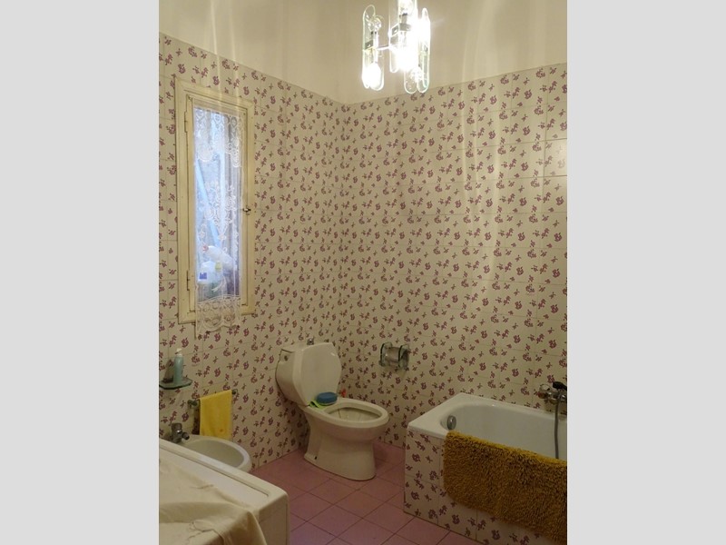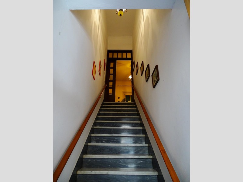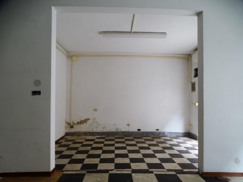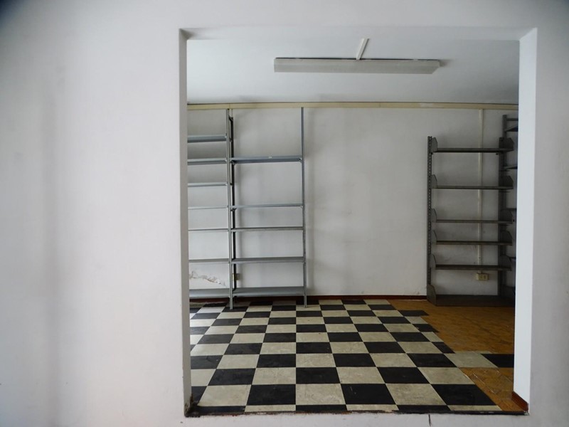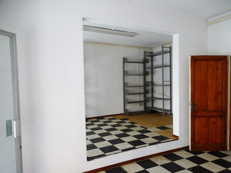 La restante parte del piano terra è occupata da due fondi ad uso commerciale tra loro collegati (oltre 40 mq. di superficie), dotati di servizi igienici e due ampie vetrine affacciate sulla strada, una delle quali funge attualmente da ingresso. Gli accessi di tutti e tre i locali al piano terra sono chiusi anche da saracinesche.