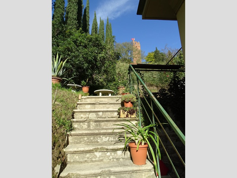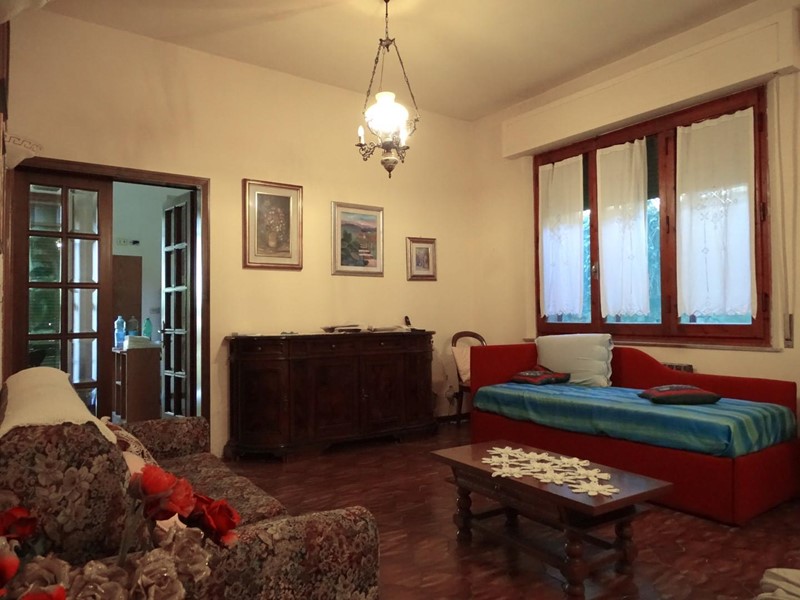 Casa a due piani con GARAGE, libera su tre lati e con ingresso indipendente, della superficie complessiva di 160 mq. circa. L'abitazione si sviluppa per intero al primo piano, al livello del quale si trova un bel giardino (di circa 1100 mq.) accessibile direttamente dalla cucina, oltre che da una scala esterna che conduce al livello della strada. L’abitazione si compone di soggiorno, cucina con grande stufa a legna, una camera da letto matrimoniale, una camera doppia, un bagno con doccia e vasca e un ripostiglio.
