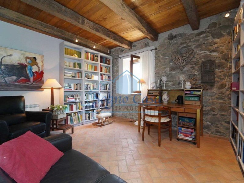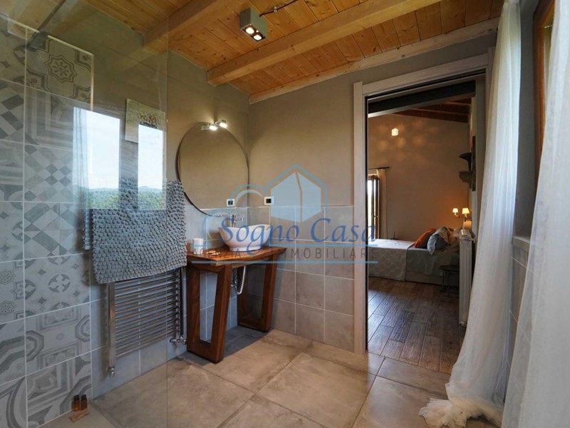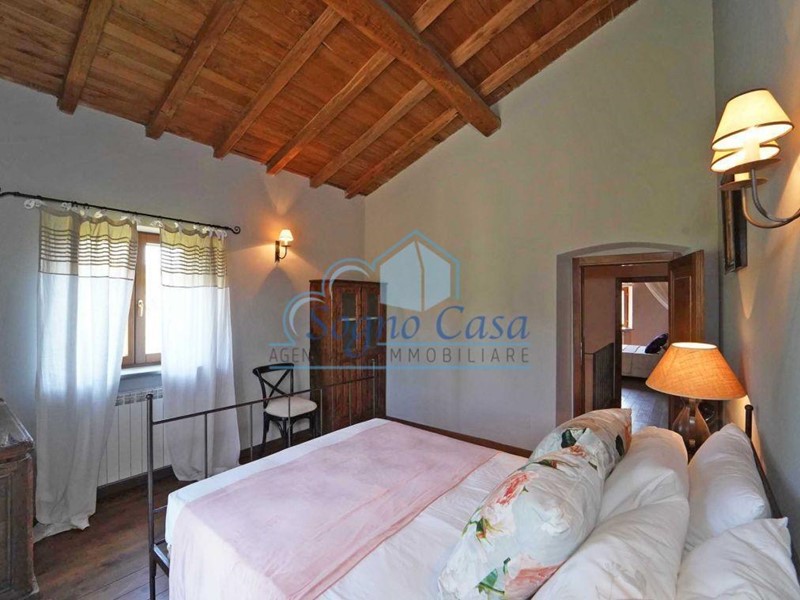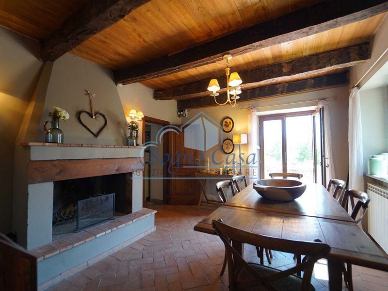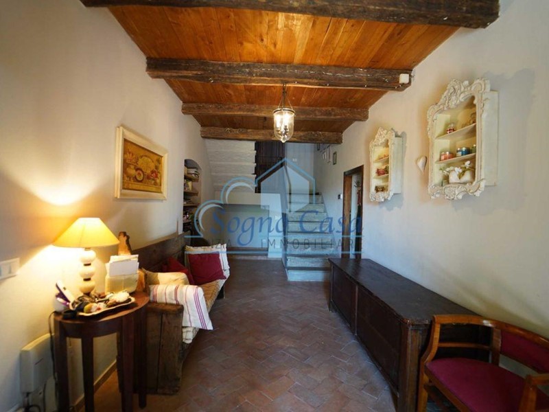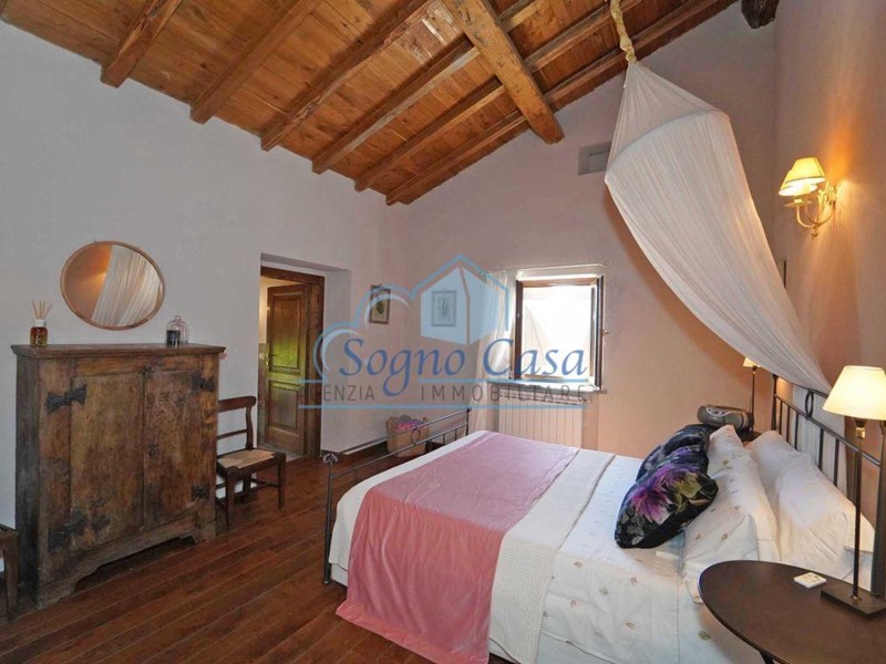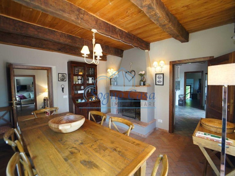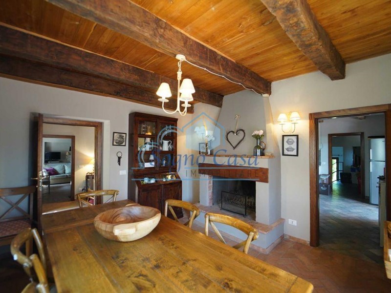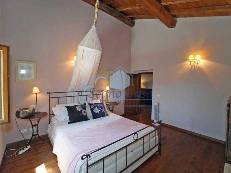 La casa principale è distribuita su due livelli: al piano terra troviamo l'ingresso con soggiorno, stufa a legno e arcata in pietra locale, studio, cucina comunicante con dispensa e con un secondo locale cottura, sala da pranzo con camino originale, bagno e lavanderia; Una scala interna in pietra conduce al secondo piano che si apre sulla zona notte con quattro spaziose camere da letto. La camera padronale ha un bagno en- suite privato con vasca; completa il piano un bagno con doccia in condivisione con tutte le altre camere.