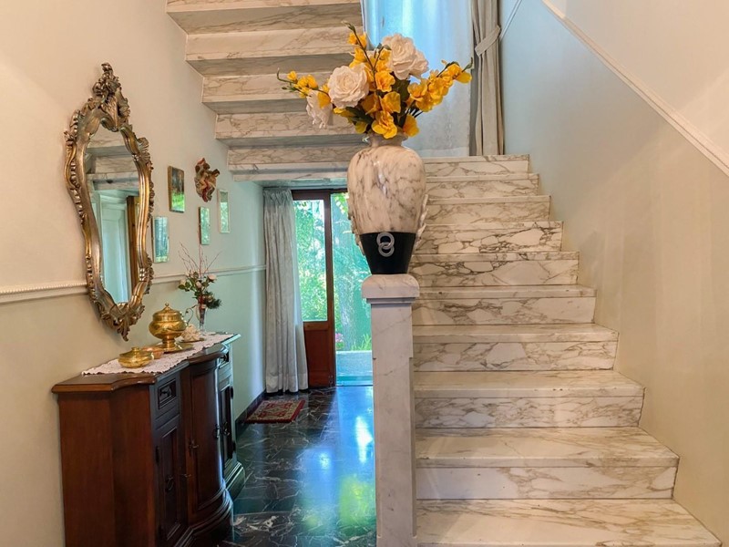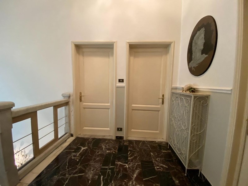 A pochi passi dalla stazione e dal centro storico, in posizione strategica villetta indipendente libera su 3 lati con giardino privato, disposta su tre livelli, composta da ampio ed elegante ingresso, tinello , cucina abitabile con affaccio su bellissima terrazza vivibile , giardino privato di mq. 400., sala , ripostiglio, al piano inferiore locali lavanderia e sgombero, scala in marmo che porta al piano primo con quattro camere da letto ampie, studio o quinta camera singola , balcone e servizio igienico. Garage di proprietà