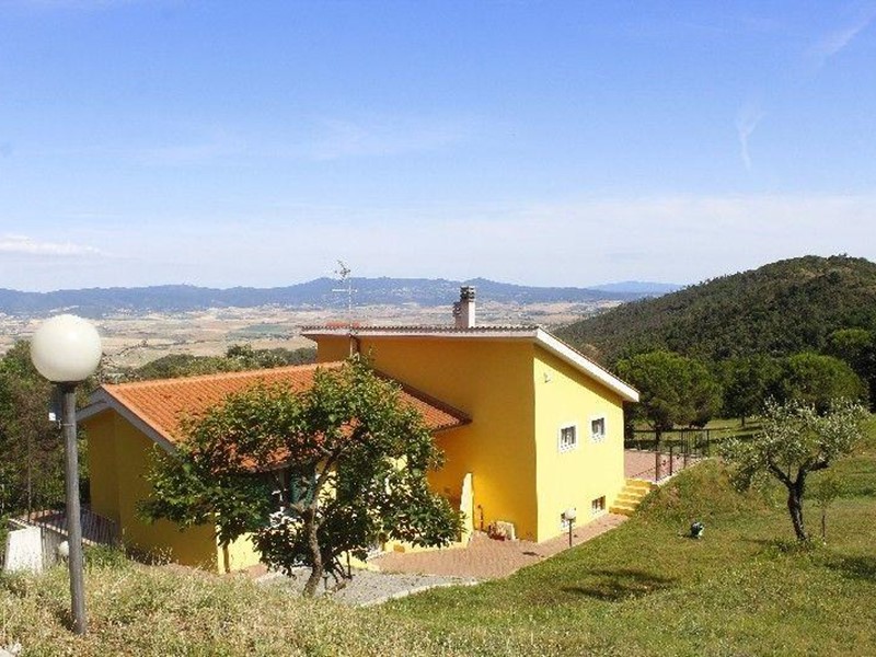 GABBRO (campagna) - Villa unifamiliare di nuova costruzione con giardino pertinenziale di mq 2500 e tre lotti di terreno agricolo, meglio identificato nella descrizione più avanti. Costruita nel 2016, la Villa si sviluppa su due livelli. Al piano rialzato, la parte abitativa vera e propria per una superficie lorda di 130 mq circa, che comprende: soggiorno con camino, cucina abitabile con affaccio su terrazzo, ripostiglio. Zona notte con tre camere matrimoniali e bagno. Da scala interna in legno e acciaio si accede al piano inferiore, che replica la superficie superiore. Troviamo vari locali (classificati di sgombero) ma di fatto adibiti a taverna (con camino), camera matrimoniale, lavanderia (locale tecnico), ripostigli ecc. oltre alla rimessa di mq 20.  Ubicata in un gradevole e ridente contesto di prima campagna, la Villa (libera su quattro lati) gode di una piacevole vista collinare, specie dal patio di mq 50. Ci accoglie uno spazio terrazzato per parcheggio di varie auto, il giardino pertinenziale di mq 2500 circa è movimentato da declivi e contropendenze, presenti alberi da frutto e piante di olivo, ideale per la realizzazione di una piscina. Attigui alla proprietà, e compresi nella vendita, tre lotti di terreno per un totale di 11.250 mq così suddivisi: 2.750 a bosco ceduo,  5.500 mq a seminativo e 3000 mq seminativo/arbor. L'immobile è provvisto di pannelli solari per produzione acqua calda, l'irrigazione viene effettuata attingendo ad un pozzo. Per la recentissima costruzione, per la completezza degli accessori presenti, la casa è disponibile per essere abitata immediatamente.