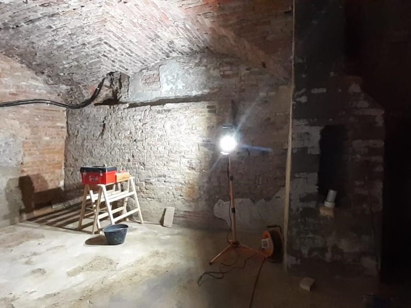 Al piano seminterrato di un palazzo del centro storico di San Miniato vendesi caratteristica cantina composta da tre vani per una superficie complessiva di circa 115 mq. circa, con doppio affaccio sul giardino e sulla vallata sottostante, grazie al quale è possibile ottenere il cambio di destinazione d'uso in civile abitazione. Un progetto esistente prevede la realizzazione di un appartamento costituito da piccolo ingresso, disimpegno, zona cottura, ampio soggiorno pranzo, camera da letto, ripostiglio e bagno con doccia. Vi si accede da un ingresso a comune a livello della strada e da una scala esclusiva.