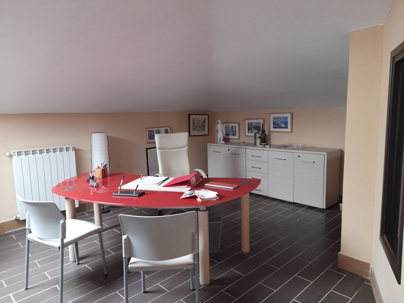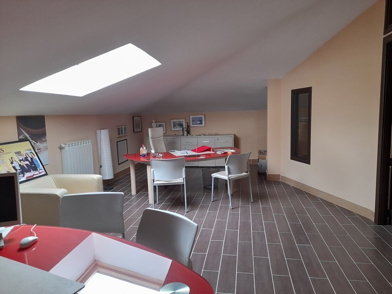 L'immobile uso ufficio è posto al primo ed unico piano dell'edificio, si sviluppa a sua volta internamente su due piani, il primo costituito da un unico ambiente con tre ampie vetrate esposte sud/est bagno ed antibagno, e archivio da qui si accede esternamente, all' ampio terrazzo perimetrale condominiale con vista aperta sul Terminillo e tutta la zona circostante, il secondo dei piani è costituito da una luminosa mansarda cat. C/2., pari metratura del piano sottostante, attualmente suddivisa in due ambienti con dei semplici tramezzi, con bagno e ripostiglio. completa la proprietà un posto auto nel cortile condominiale. La zona circostante è servita da numerosi parcheggi liberi a due passi dalla terminillese equidistante dal centro città e dalle vicine località di Vazia e Santa Rufina.