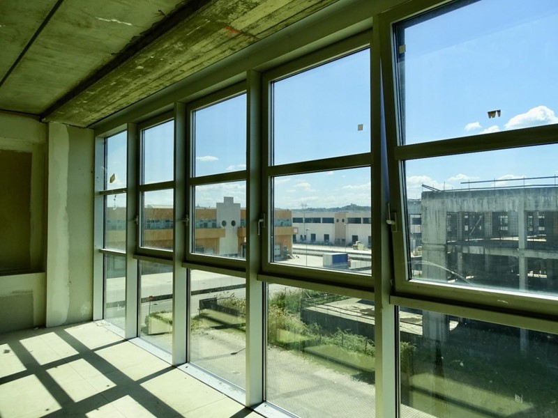 In nuovo centro direzionale vendesi ufficio da ultimare della superficie di circa 80 mq., con servizi (bagno ed antibagno). Luminosissimo grazie a un'ampia parete interamente finestrata è situato al terzo piano di uno degli edifici principali del complesso, con accesso da vano scala e disimpegno a comune.