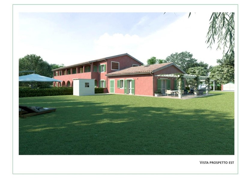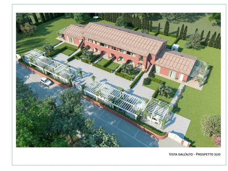 Fornacette - NOSTRA ESCLUSIVA - Nuovo intervento edilizio denominato "Casa Piaggio" posto in zona tranquilla e verde a poca distanza dal centro del paese. Villetta angolare del tipo viareggina, indipendente di 107 mq., 36 mq. di soppalco/mansarda, 37 mq. di loggiato con accesso sia dal soggiorno sia dalla cucina e con 1150 mq. di giardino, posto al piano terra, composto da: ingresso in soggiorno di 23 mq. con accesso sul loggiato, cucina abitabile di 13 mq. con accesso sul loggiato, disimpegno notte, 2 camere, studio, 2 bagni (di cui uno in camera matrimoniale). L'immobile è corredato da un ripostiglio esterno e da una casetta in legno con pergolato ad uso posto auto coperto, da un ulteriore posto auto scoperto e da 1150 mq. di giardino esclusivo adatto per l'installazione della piscina. Rifiniture eccellenti, impianti di ultimissima generazione, non allacciato al gas, fotovoltaico 2,14 Kwh. Consegna primavera 2025. Possibilità di personalizzare pavimenti, rivestimenti e imbiancature. Classe energetica: A3 - Richiesta 435.000 tratt. Rif. 791