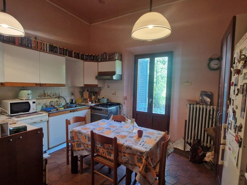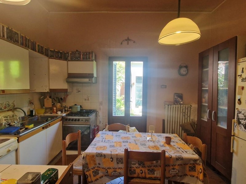 Riglione: In zona centrale e particolarmente silenziosa, palazzina d'angolo inizio secolo su tre livelli, composta al piano terreno da ampio ingresso, soggiorno, grande cucina abitabile con accesso al giardino e bagno di servizio; al piano primo tre camere e bagno; al piano secondo grande mansarda ampliamente finestrata con soffitti alti divisibile in due/tre vani. Giardino esclusivo con possibilità di parcheggio e locale di sgombero in muratura. L'immobile necessità di lavori di ristrutturazione. Rif. 3853